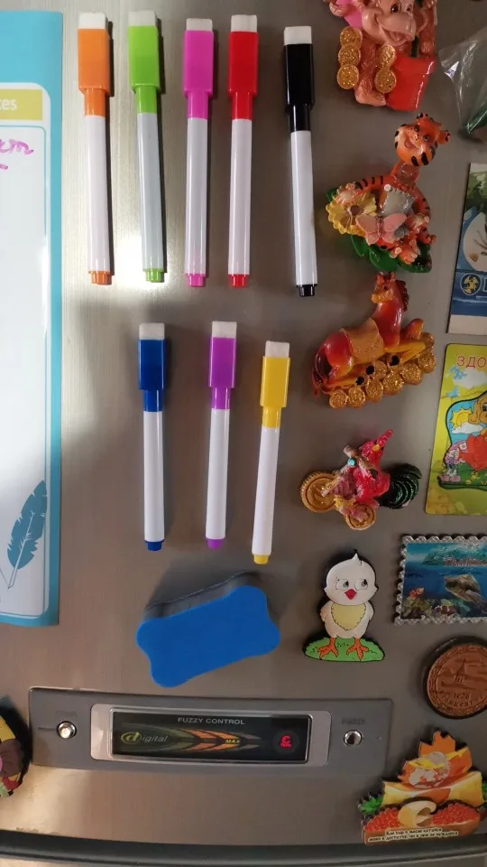 Всё классно! Отлично упаковано. Хорошо висит на холодильнике. Маркеры хорошо пишут, и полностью стираются. Покупкой довольна, рекомендую!