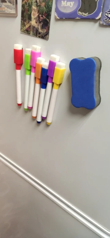 Маркеры пишут хорошо, губка стирает хорошо. Жаль, что губка не на магните - хранить не удобно...