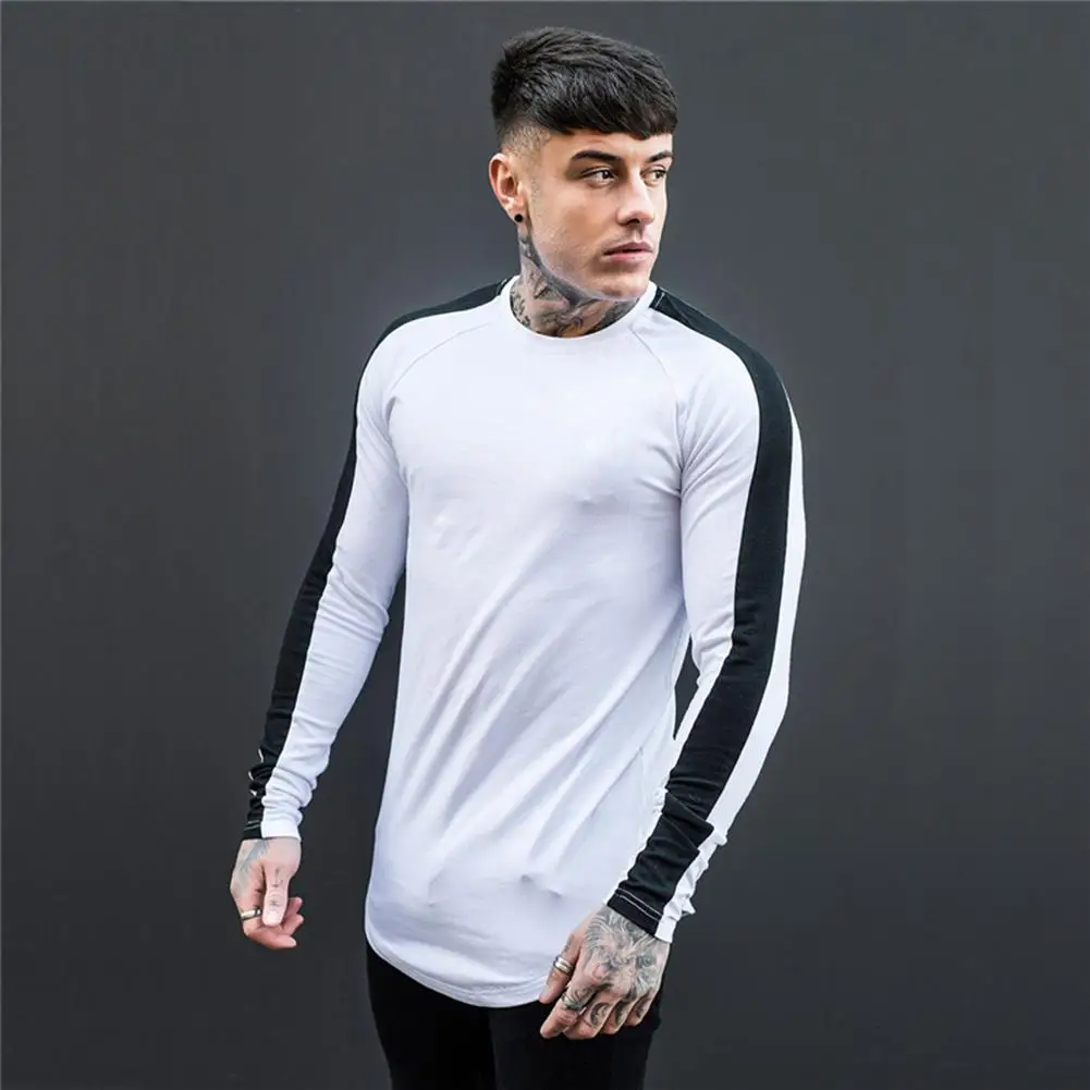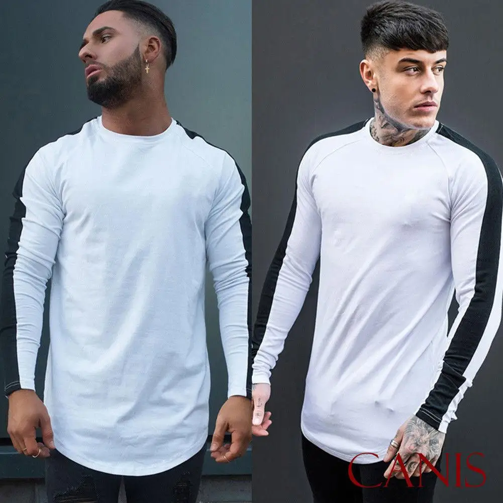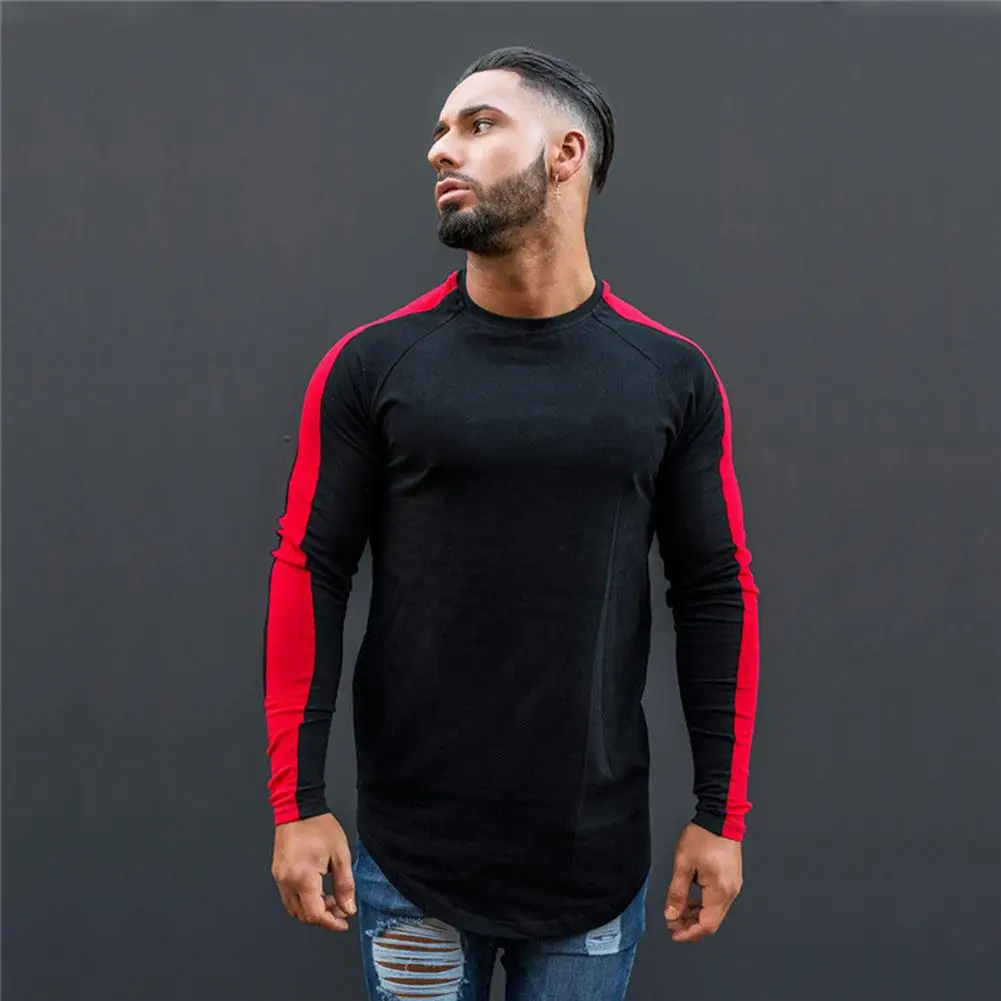 Мужская облегающая футболка с длинным рукавом, черная или красная однотонная Повседневная футболка с круглым вырезом для бодибилдинга, модель 3XL в Корейском стиле, 2020