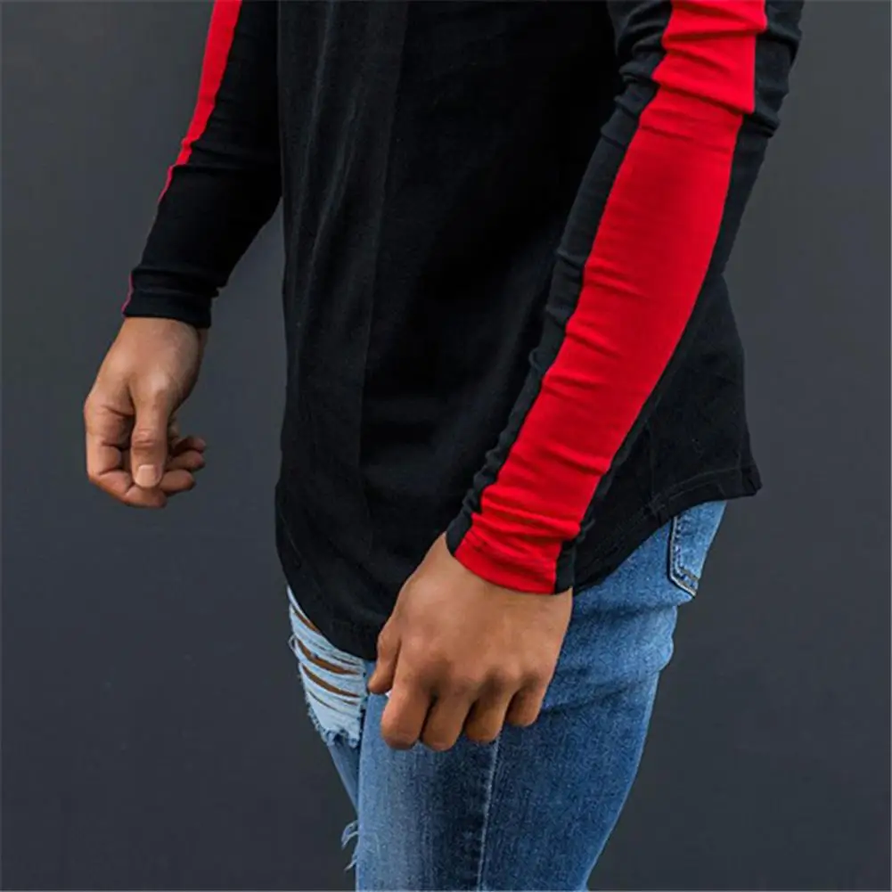 Мужская облегающая футболка с длинным рукавом, черная или красная о...