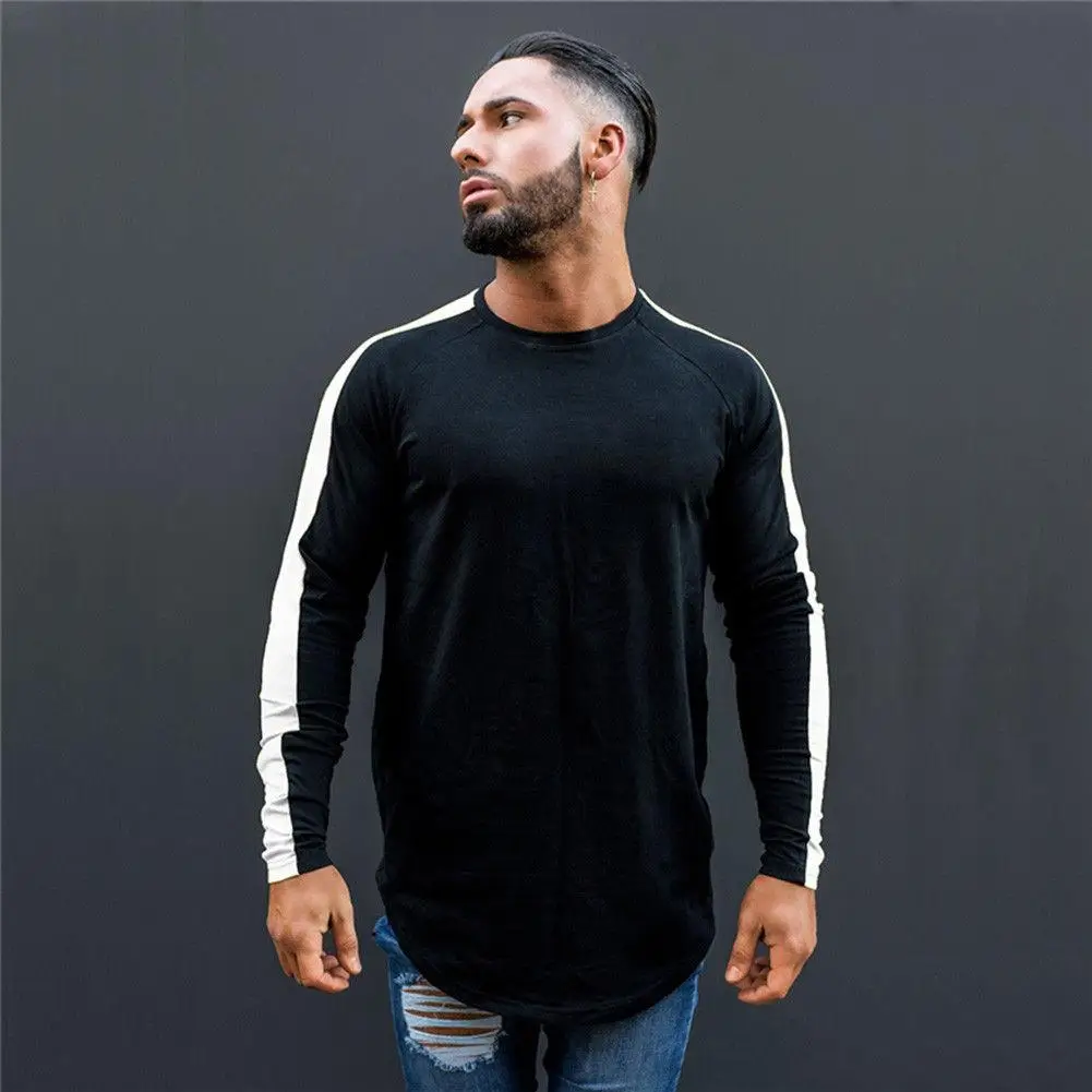 Мужская Повседневная футболка с длинным рукавом, облегающая, черног...