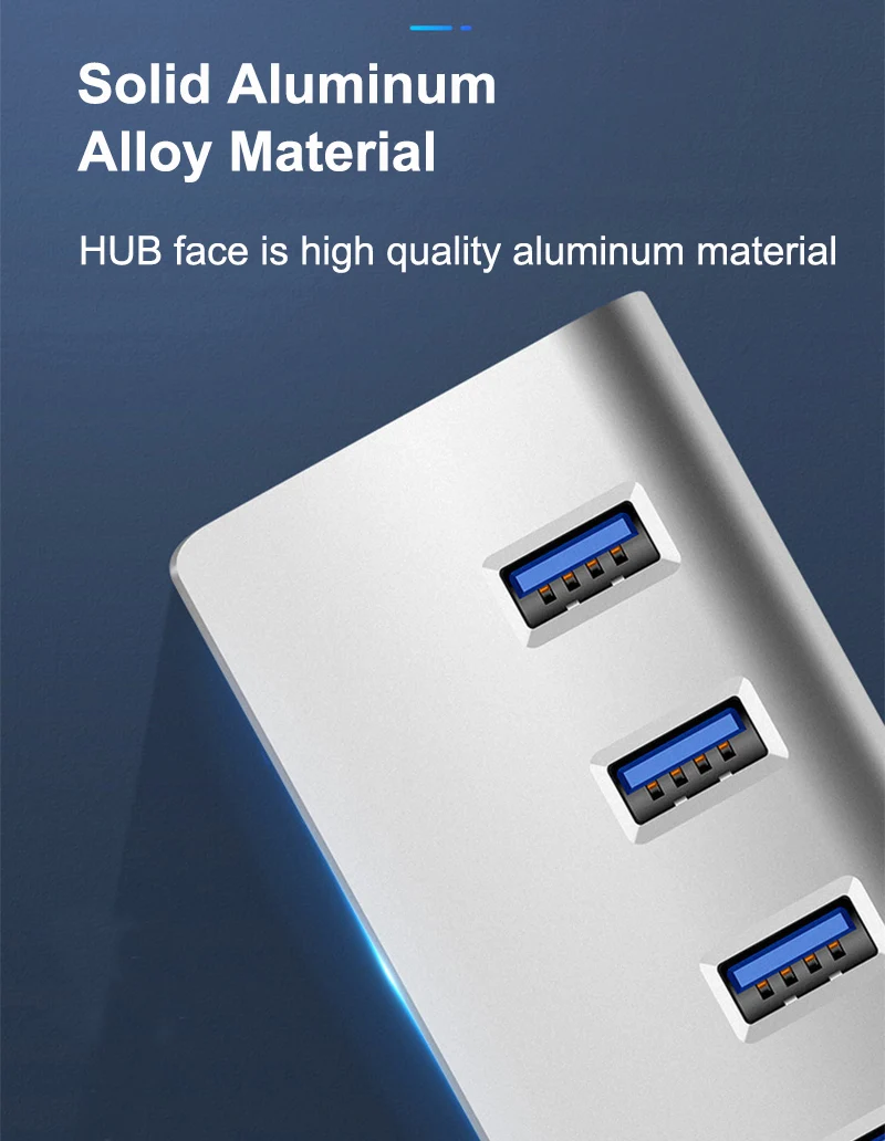 7 USB 3.0 порт, термопластичный эластомер кабель питания, противоскользящие нижние колодки, алюминиевый корпус корпуса, пескоструйная обработка Workmanshi
