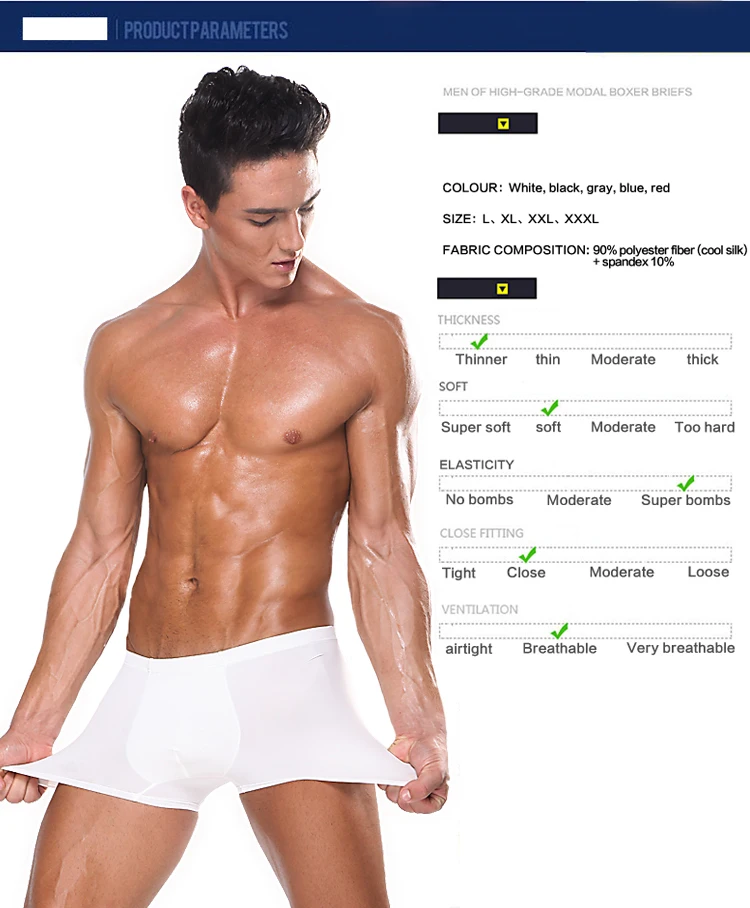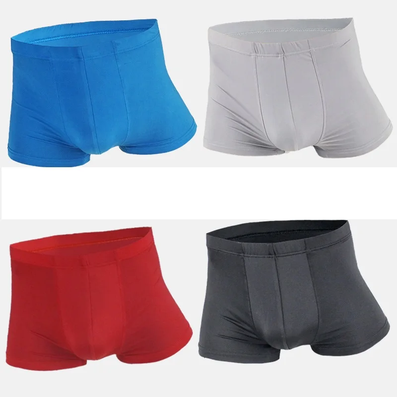 Трусы-боксеры мужские 4 шт.лот, шелковые однотонные, удобные шорты, нижнее белье