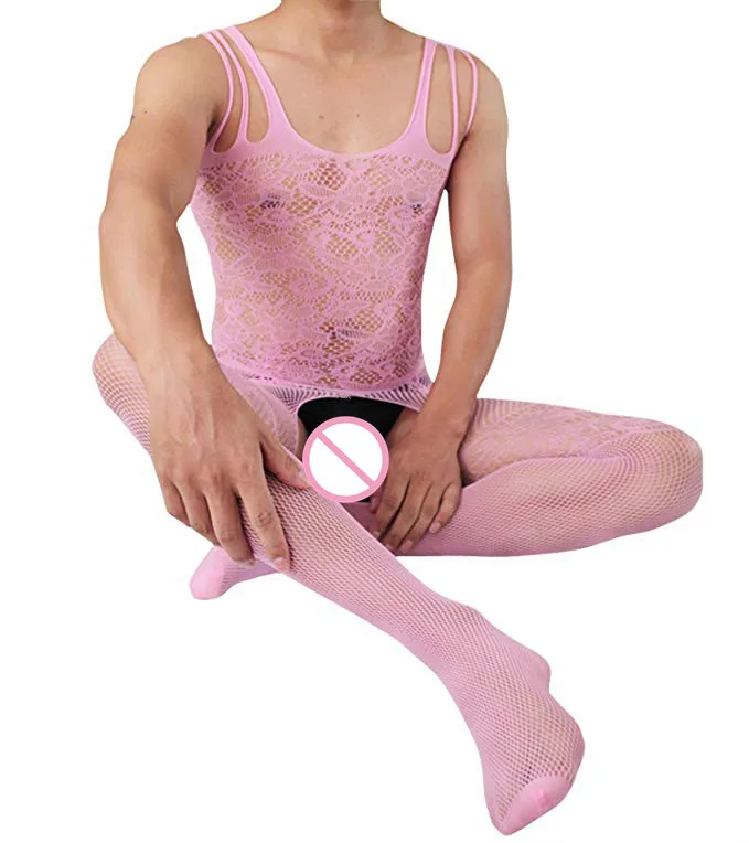 Забавное нижнее белье для мальчиков, мужское нижнее белье, комбинезон с открытой промежностью, Чулки с подтяжками, сексуальное нижнее белье для геев, Сетчатое боди