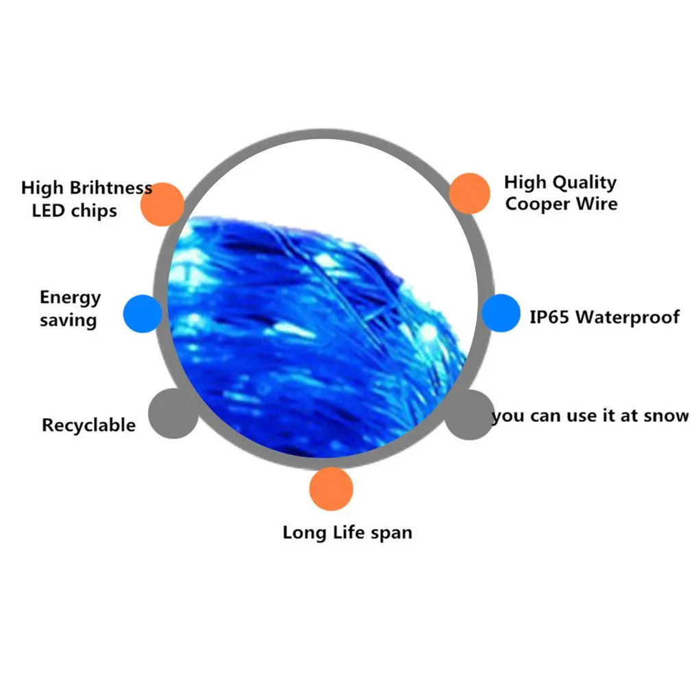 Тип: USB кабель 5 метров 50 ламп, батарейный блок 5 метров 50 ламп, USB кабель 10 метров 100 ламп, батарейный блок 10 метров 100 ламп (опционально)