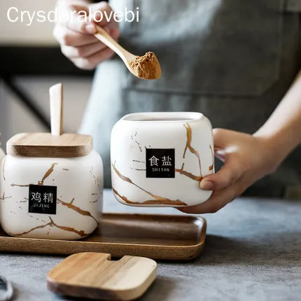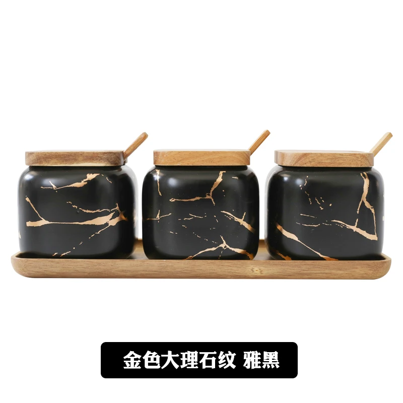Нордический креативный керамический золотой мраморный набор для приправ, домашний кухонный шейкер для соли, органайзер для хранения, пищевой контейнер