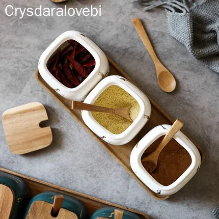 Керамический набор баков для приправ в скандинавском стиле, деревян...