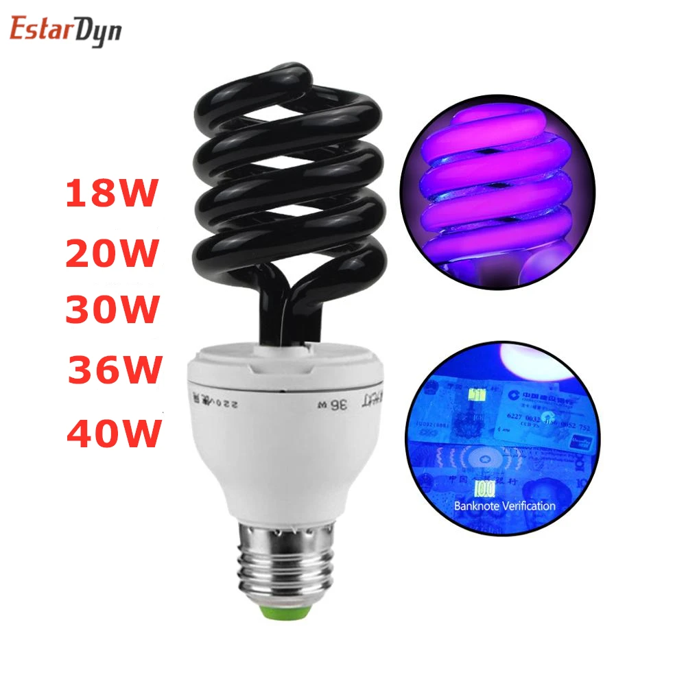 Ультрафиолетовая УФ-лампа 18 Вт, 20 Вт, 26 Вт, 36 Вт, 40 Вт, черная, голубая лампа BLB, флуоресцентная лампа для обнаружения E27, 220 В, фиолетовая декоративная лампа для приманки