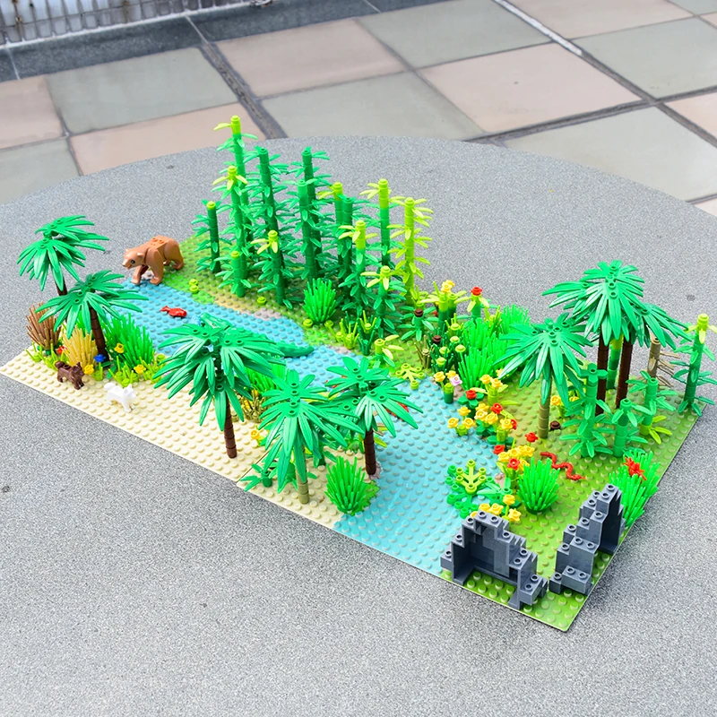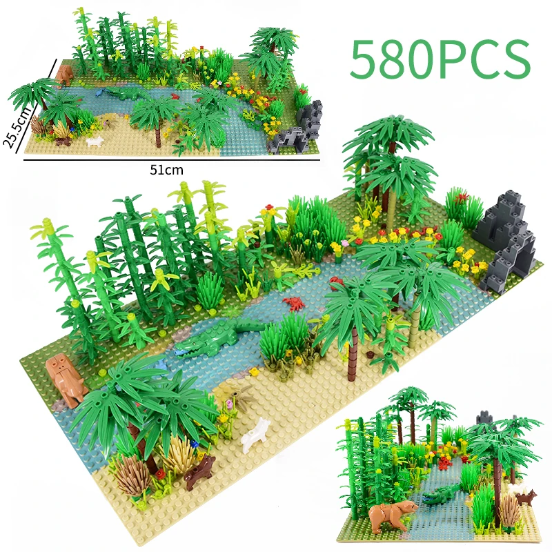 Блоки MOC дождевой лес и река, тропические дождевые леса, животные, динозавры, основание, строительные блоки, кирпичи, игрушки динозавры мир Юрского периода