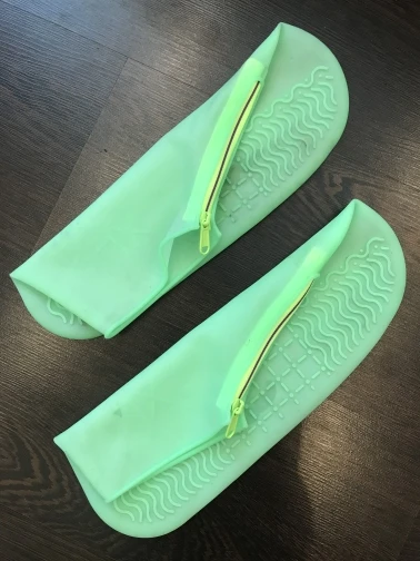 Весна в России - самый лучший период для покупки чехлов на обувь. Своевременно и практично - промочить ноги в них точно не удастся, а вместе с тем испортить или замарать любимую пару кроссовок. Стильной расцветкой можно удачно разнообразить внешний вид - яркие цвета хорошо этому способствуют. Особенно, в серую погоду. Даже наступив в грязную лужу, ноги выглядят эстетично. Влаге негде задерживаться и впитываться, так как материал изделия - непромокаемый силикон. Несколько минут на солнце - чехлы полностью сухие. Также легко моются, поэтому при следующем выходе на улицу, выглядят как новые. С размером не возникло проблем - взял XL на 43 европейский. Обувь с большой или высокой подошвой помещается идеально, а менее габаритная оставляет немного свободного пространства, но это не приносит дискомфорта во время ходьбы. На этой модели есть молния, что существенно облегчает одевание. Если будете покупать для ребёнка - заметно упростит задачу! Наш итог: 10 резиновых галош из 10.