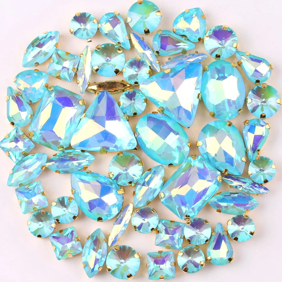 Закрепка с золотыми когтями, 50 шт.пакет форм, Микс желейных конфет, аквамарин, стеклянные стразы AB, для пришивания, для свадебного платья, обуви, сумки сделай сам