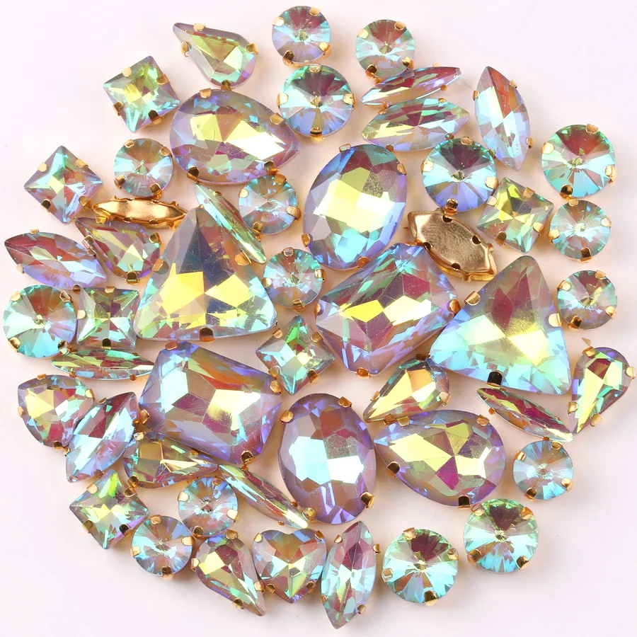 Золотые стразы, 50 шт.пакет, разноцветные, желейные, AB цвета, стразы, стразы, свадебные туфли, сумки, сделай сам