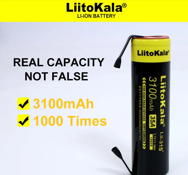 Аккумулятор LiitoKala Lii-31S 18650, 1-8 шт., 3,7 в, литий-ионный, 3100mA, 35A, для высокой Дренажные устройства + DIY никелевый