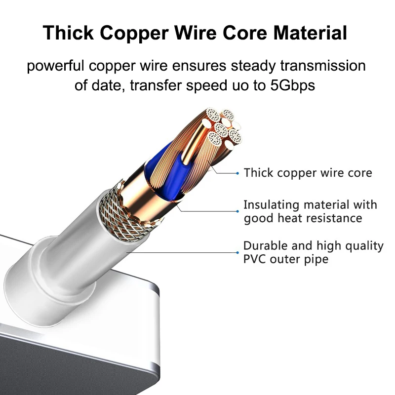 Мощный медный провод обеспечивает стабильную передачу даты, скорость передачи uo до 5 Гбит/с