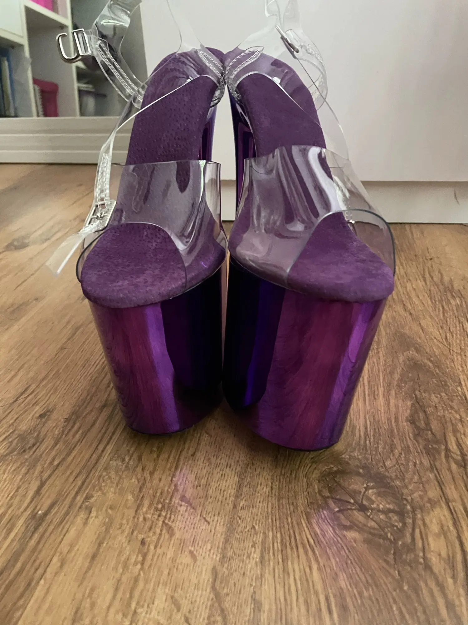 Его действительно удобно, даже более чем приятно, думал, что подушка тоньше, но силикон не повреждает кожу, а основание немного больше, чем приятно, что делает его более безопасным для ходьбы. Единственное, что мне не понравилось, это не очень хорошо, чтобы делать кромочную работу на пятке, а не закругленную точку, как Pleaser. Эта подошва, в частности, была не очень хорошей, и цвет кажется не полностью окрашенным, но это не имеет большого значения. Я поменяла подошву, и она стала для меня лучшим каблуком! Одобрено.