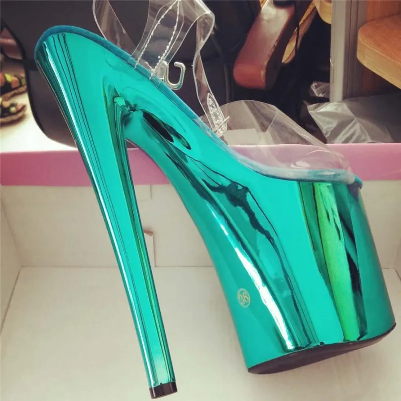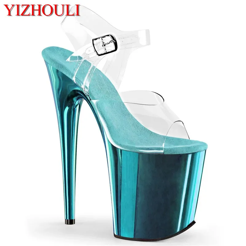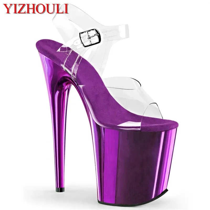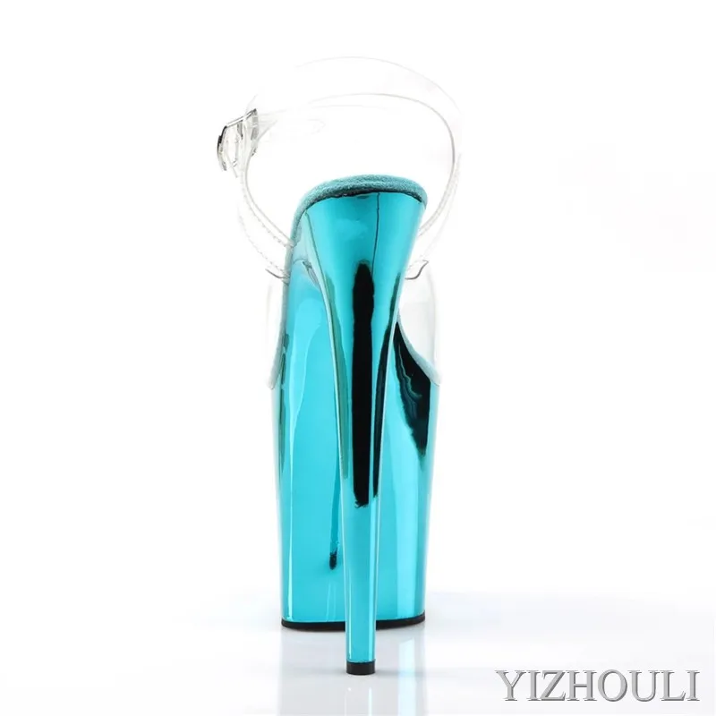 Прозрачные каблуки 8 дюймов, пикантные туфли на шпильках 20 см с гальваническим покрытием, модель сандалий для танцев на шесте