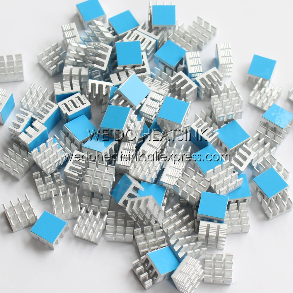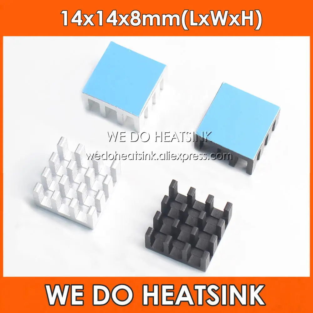 Оптовая продажа, 14x14x8 мм, серебристыйчерный анодированный алюминиевый радиатор с термопроводящей двусторонней клейкой лентой