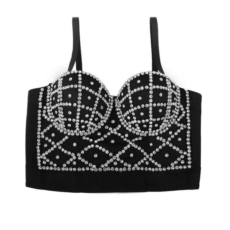 Женский укороченный топ Croptop, элегантный пикантный черный топ-бюстье с бисером, майка на лето 2020