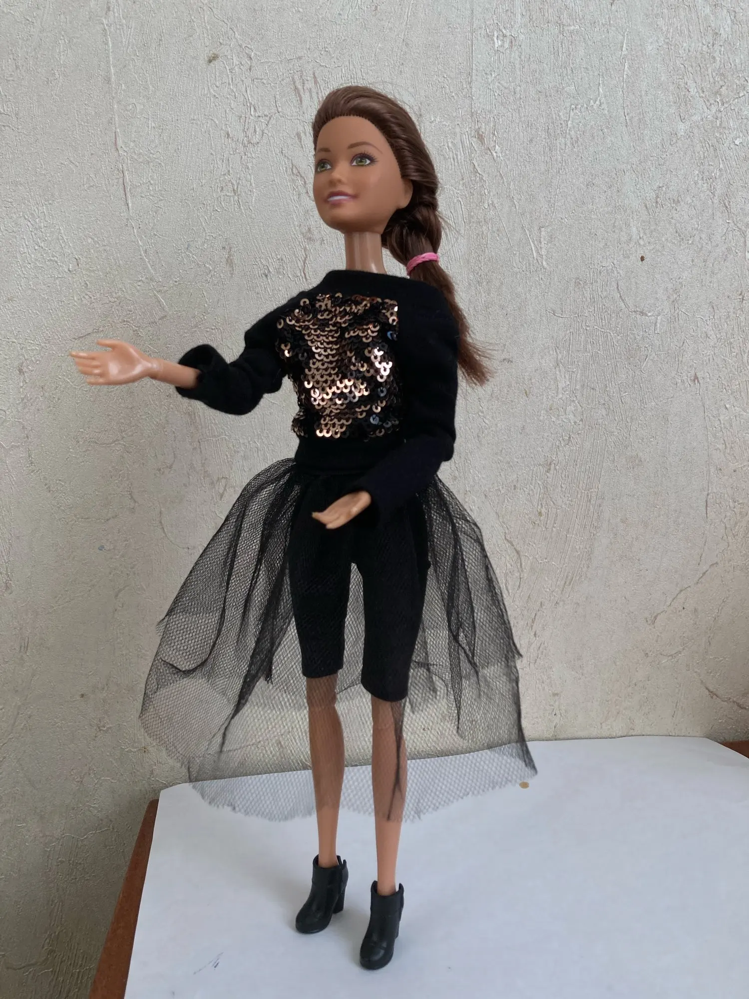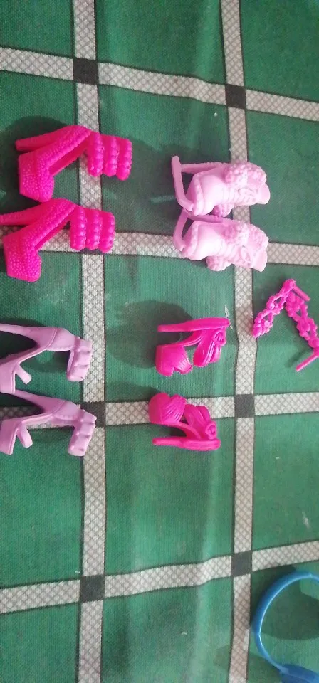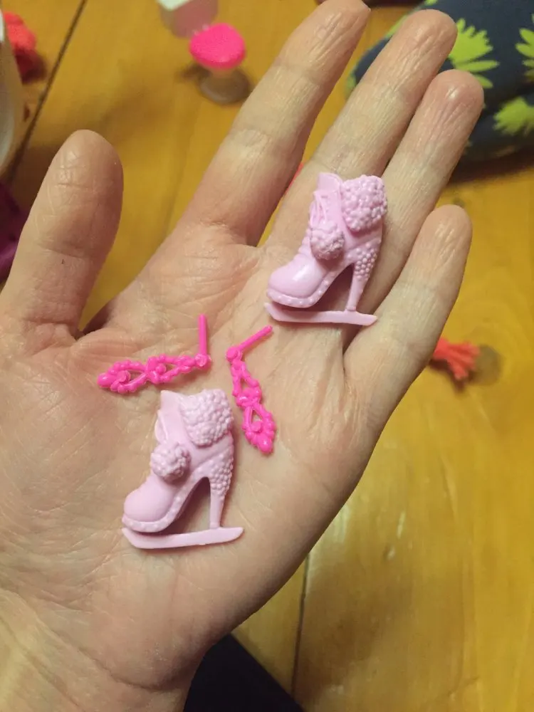 Как на фото. Подходит для Барби на высоком каблуке. Резиновый пластик. Прибыла в Канаду примерно через полтора месяца. Я заказал много отдельных пар обуви, и никаких ошибок не было. Они даже отправили бесплатную пару обуви.