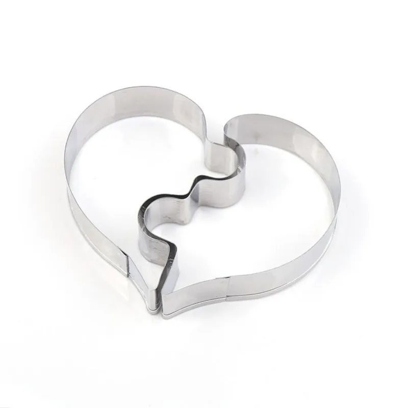 2 шт., форма для печенья в форме сердца, левое правое сердце, резак для печенья, забавная любовь, свадебные пазлы, романтическая форма для печенья, печать печенья