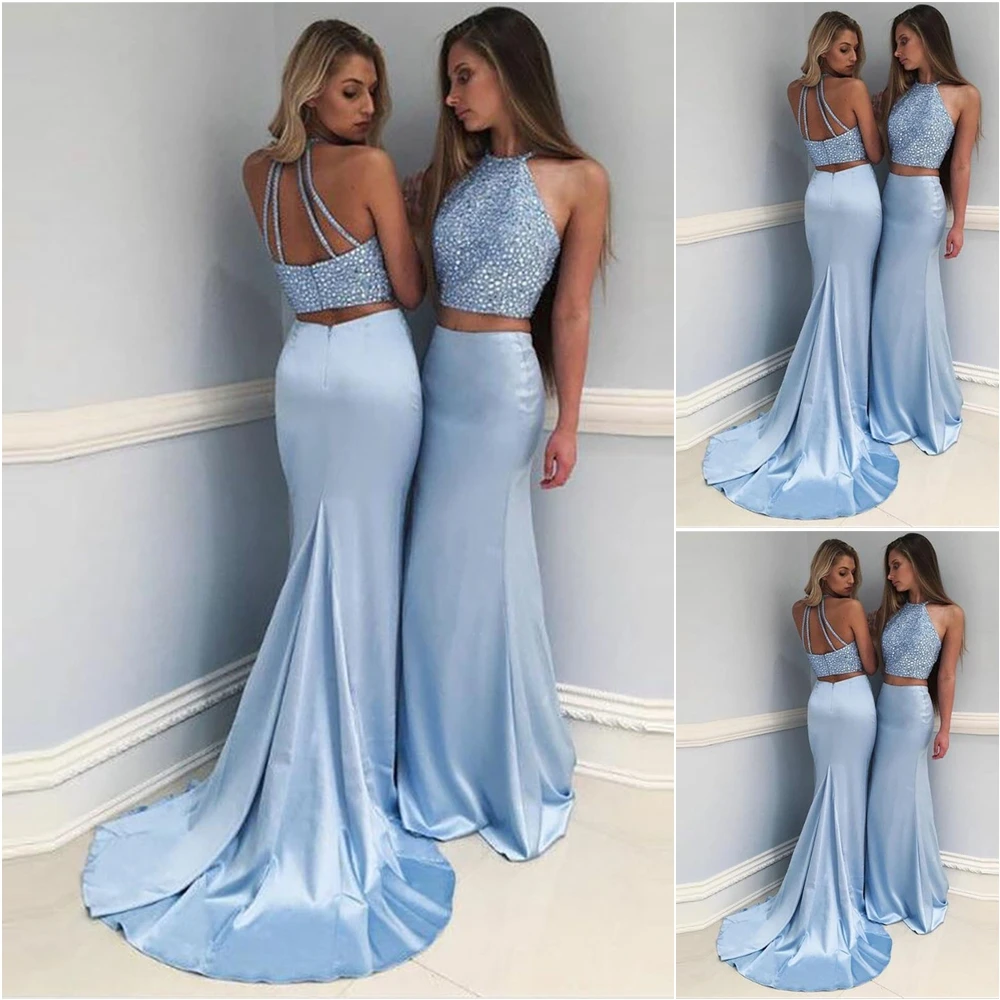 Платье для выпускного вечера с открытой спиной, новые платья подружки невесты, платье из двух частей, платье с бисером, бесплатная доставка