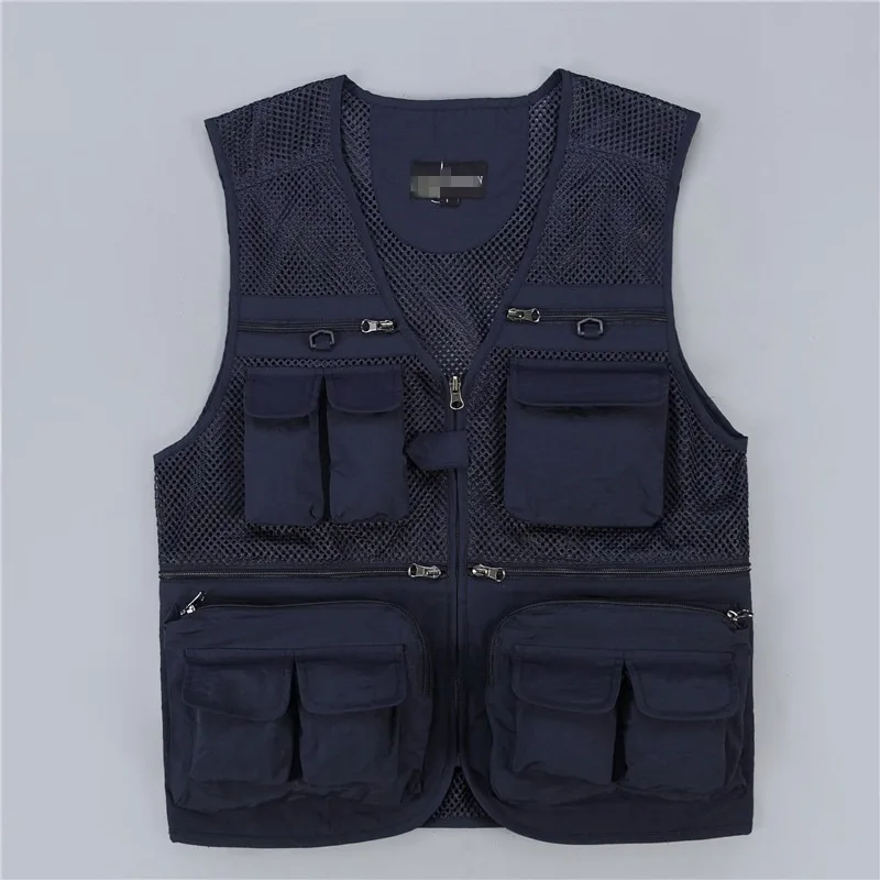 Синий летний жилет для мужчин размера плюс, Мужская Рабочая рыболов...