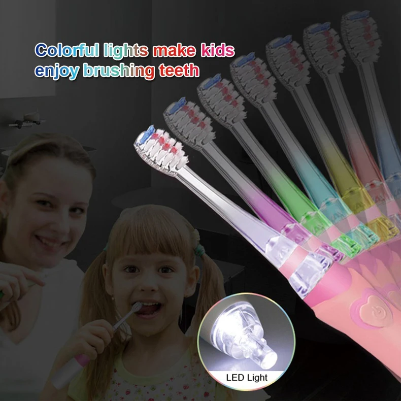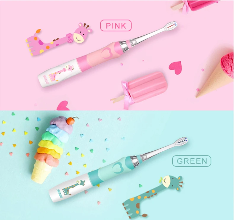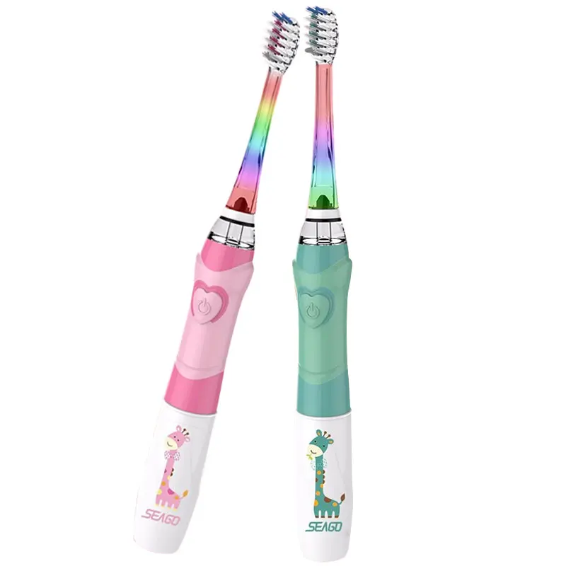 Электрическая зубная щетка Seago , для детей, милый цветной светодиодный фонарик , 16000 насадок , 1 щетка, ручка, 2 сменных головки, для детей Age3 +