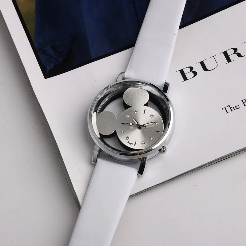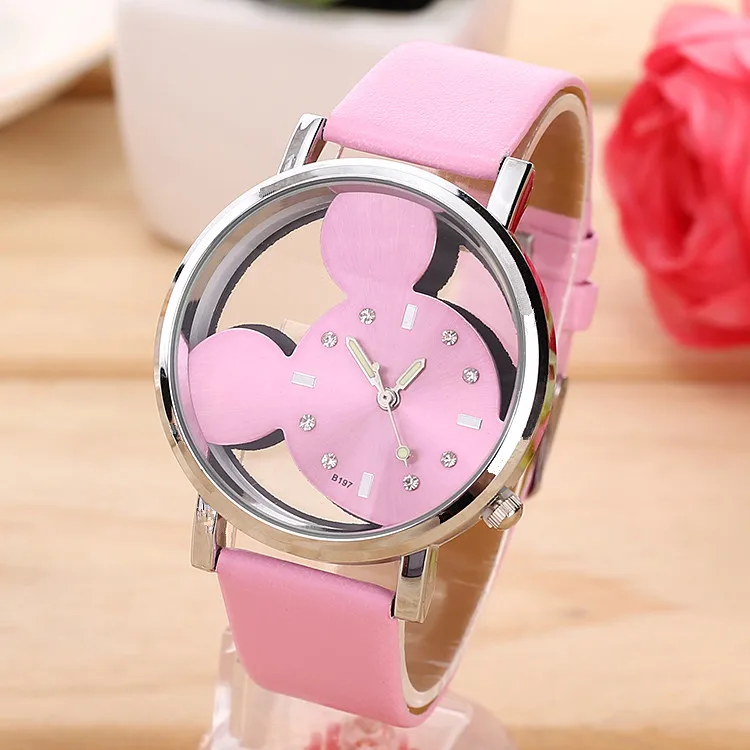Часы Детские кварцевые с кожаным браслетом Disney Mickey, милые Мультяшные детские часы для мужчин, женщин, студентов, подарок на день рождения