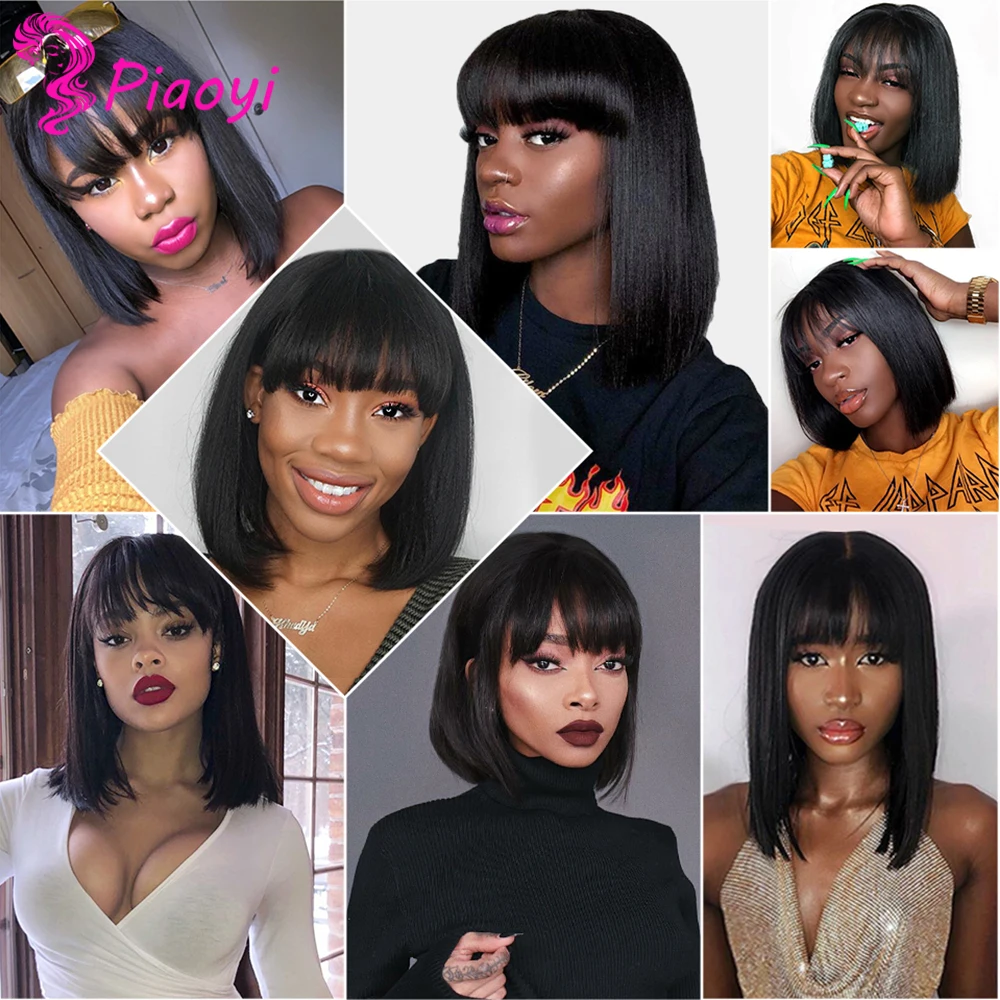 Парик из натуральных волос Piaoyi, парик с челкой, бразильские прямые парики, Короткие парики из натуральных цветов, оптовая продажа