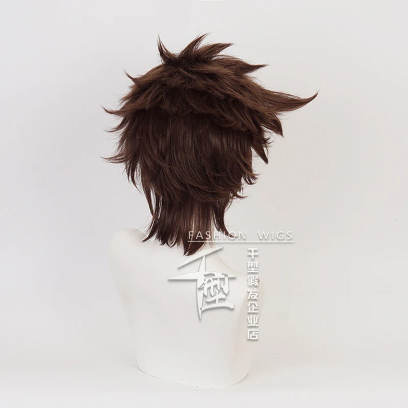 Короткие каштановые парики для косплея, термостойкие синтетические волосы для мужчин и женщин