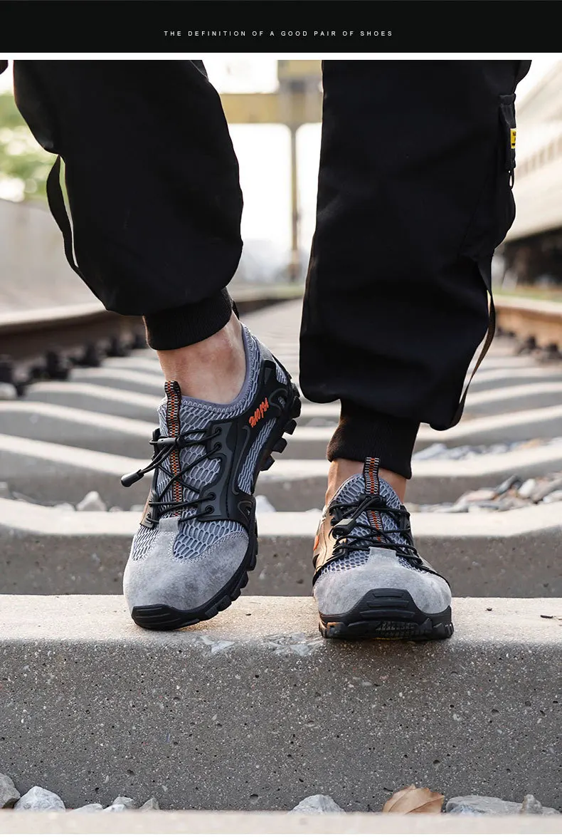 Мужские кроссовки со стальным носком, дышащие, безопасные рабочие ботинки, Нескользящие, для строительства, летняя обувь