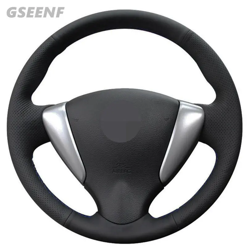 Черная сшитая вручную искусственная кожа для Nissan Tiida Sylphy 2015-чехол рулевого колеса автомобиля Versa 2012-2015