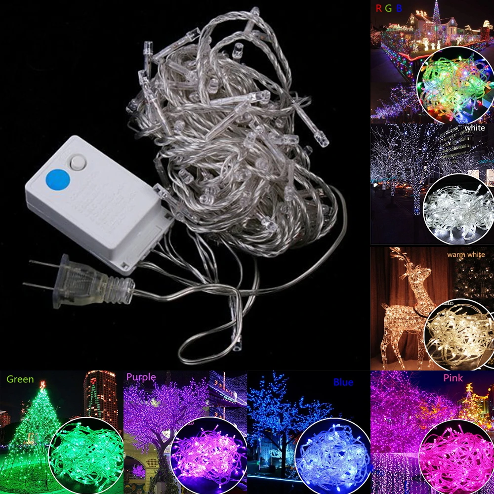 Рождественская уличная Рождественская гирлянда с вилкой Стандарта ЕССША, светодиодная гисветильник лянда s 100 м 10 м, украшения, волшесветильник свет, праздничное освещение, гирлянда на дерево