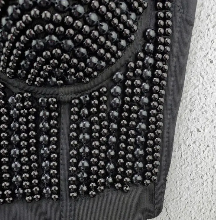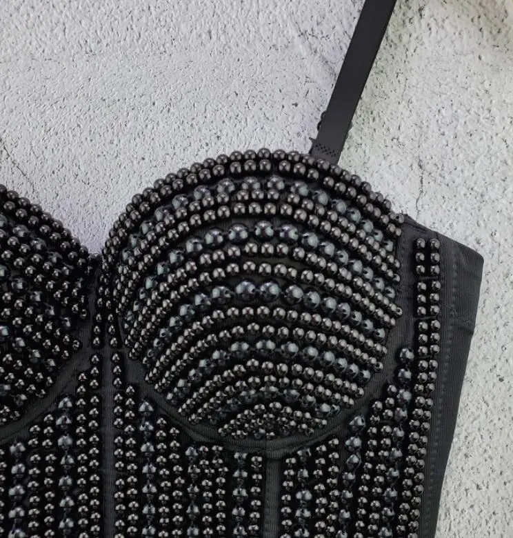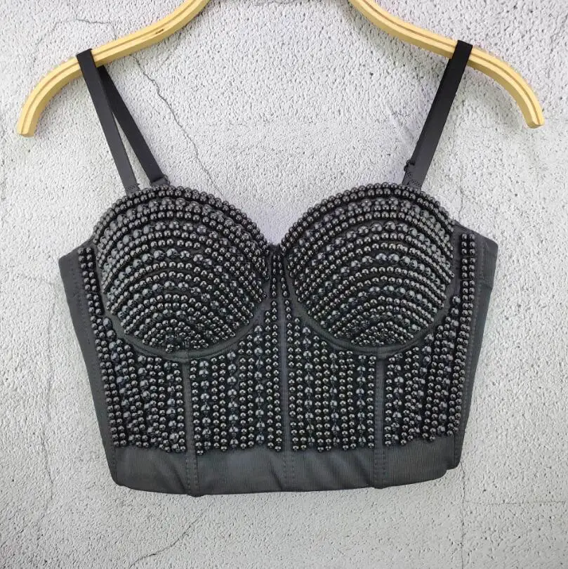 Женский Готический корсет, бюстгальтер пуш-ап с бусинами и жемчугом