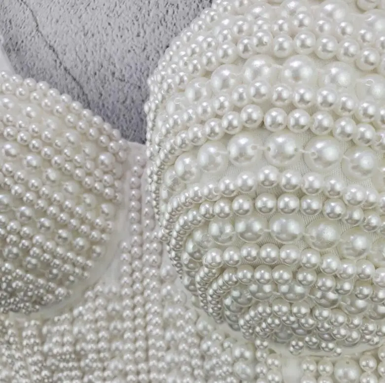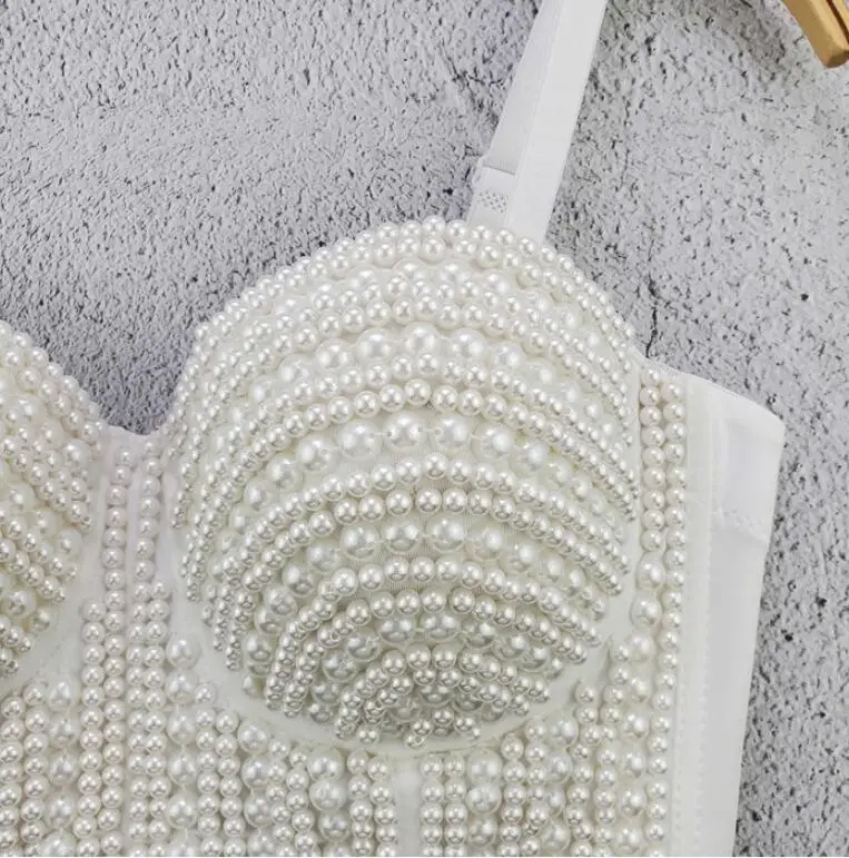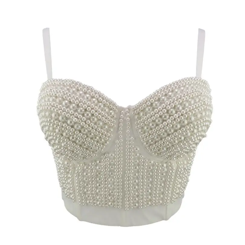 Сексуальные жемчужные стразы женские короткие топы бюстье белый топ...