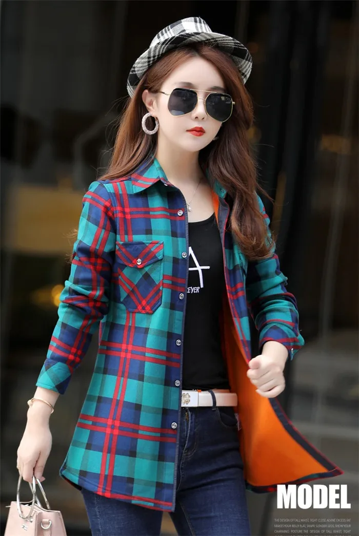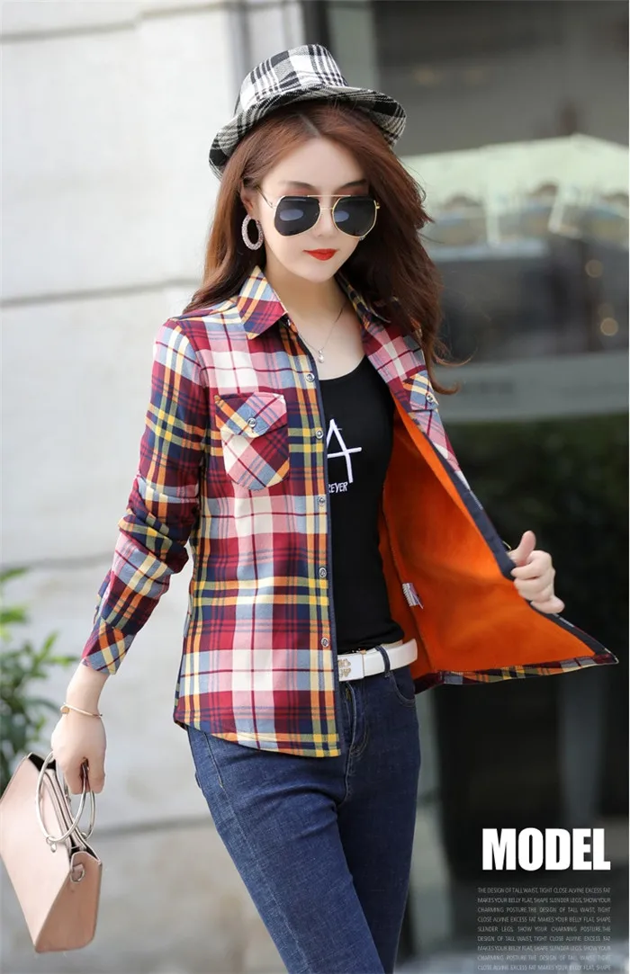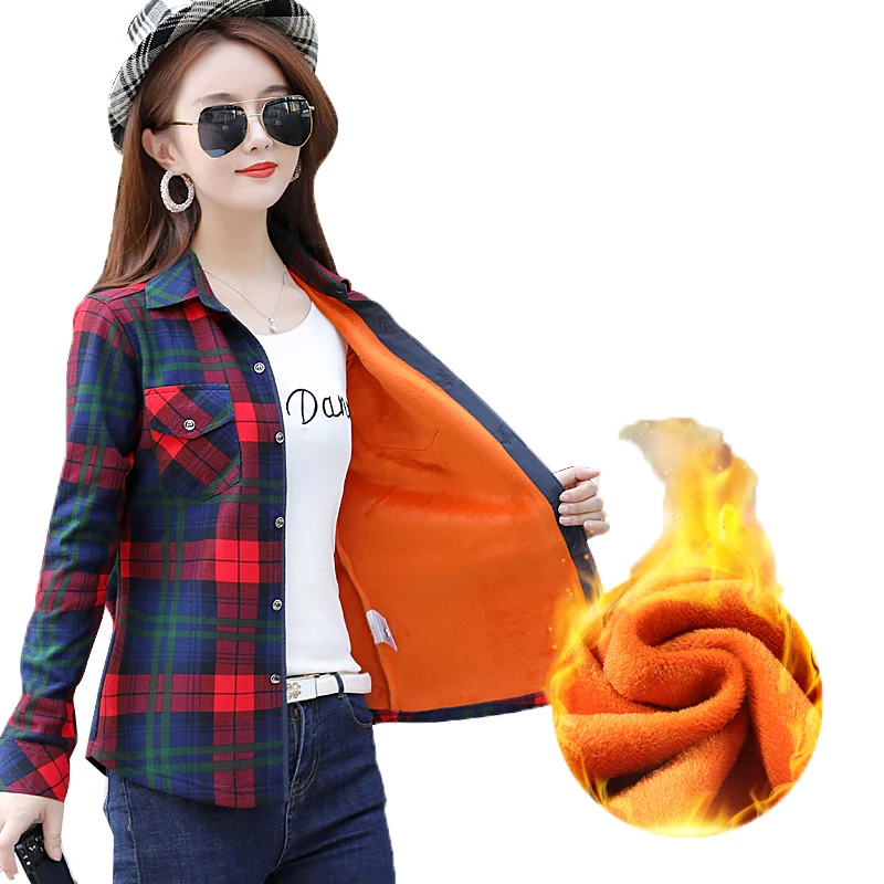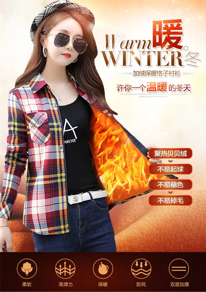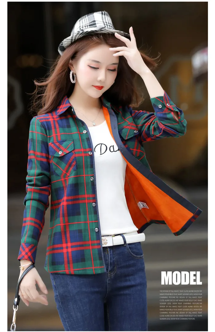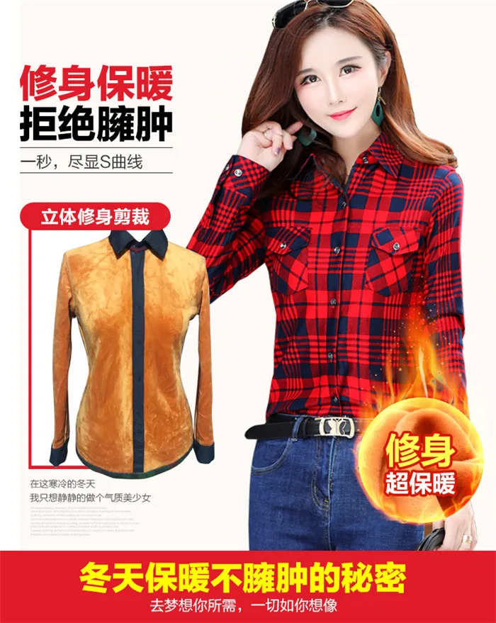 Рубашка Женская осенне-зимняя, бархатная, теплая, в клетку, 4XL