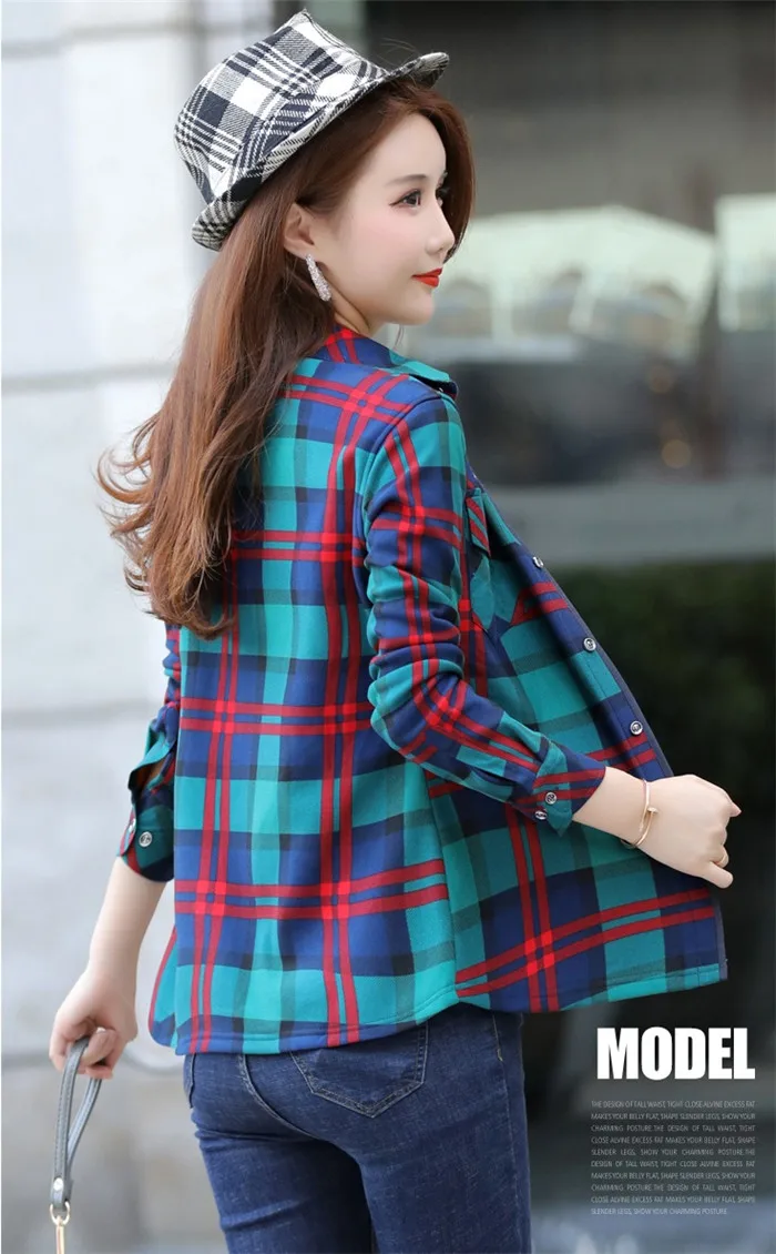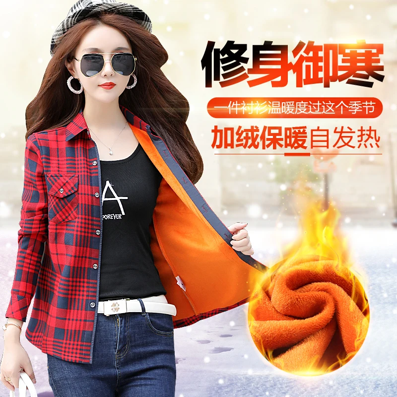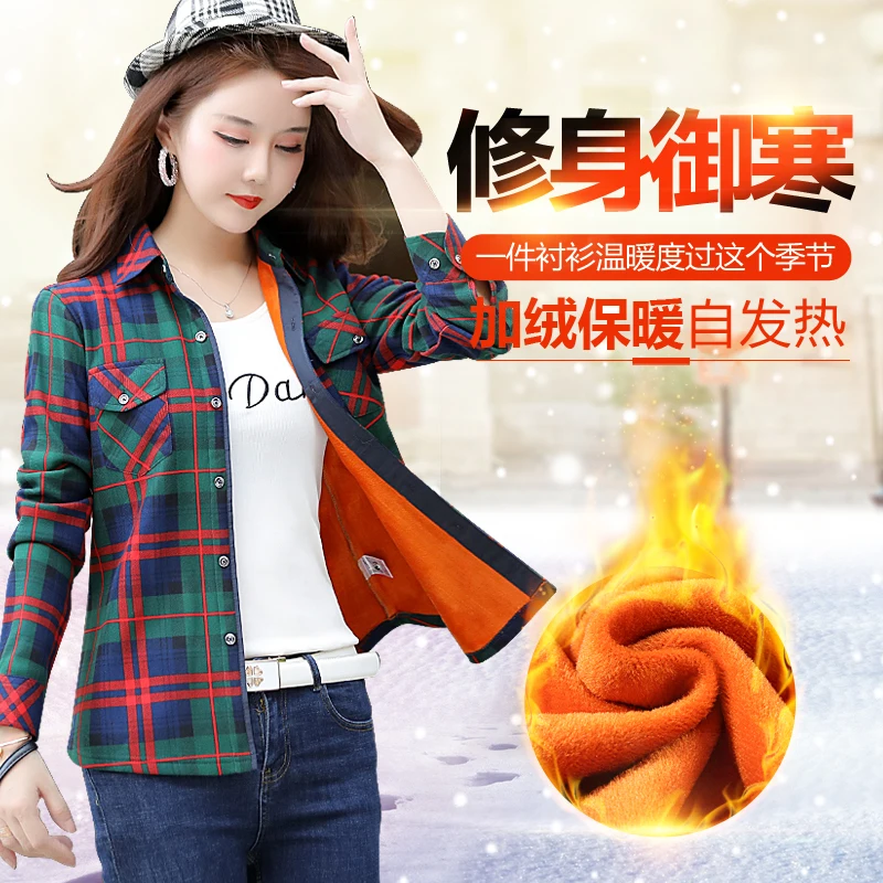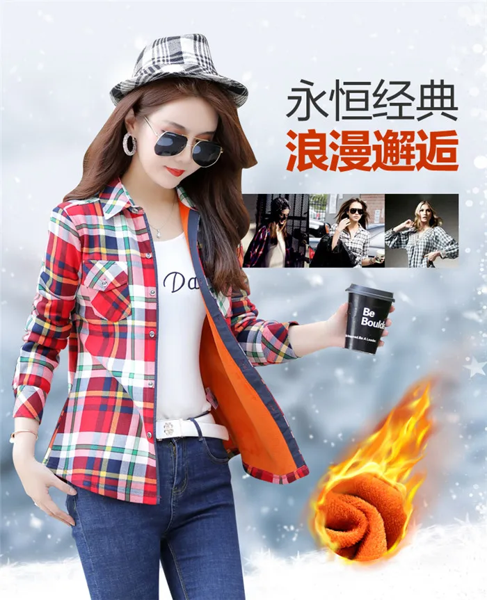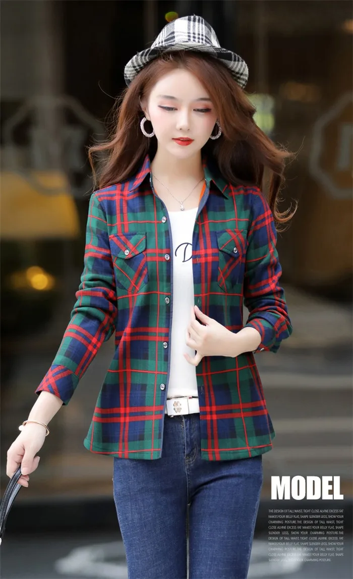 Рубашка Женская осенне-зимняя, бархатная, теплая, в клетку, 4XL