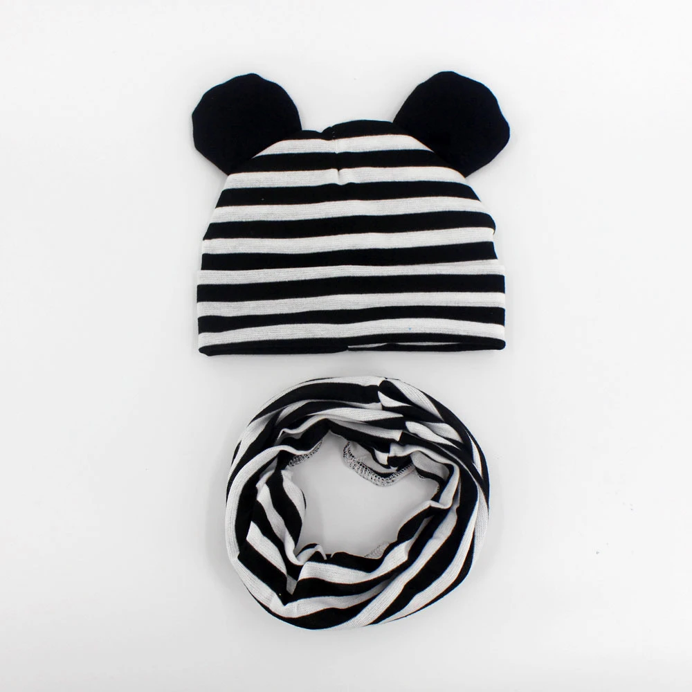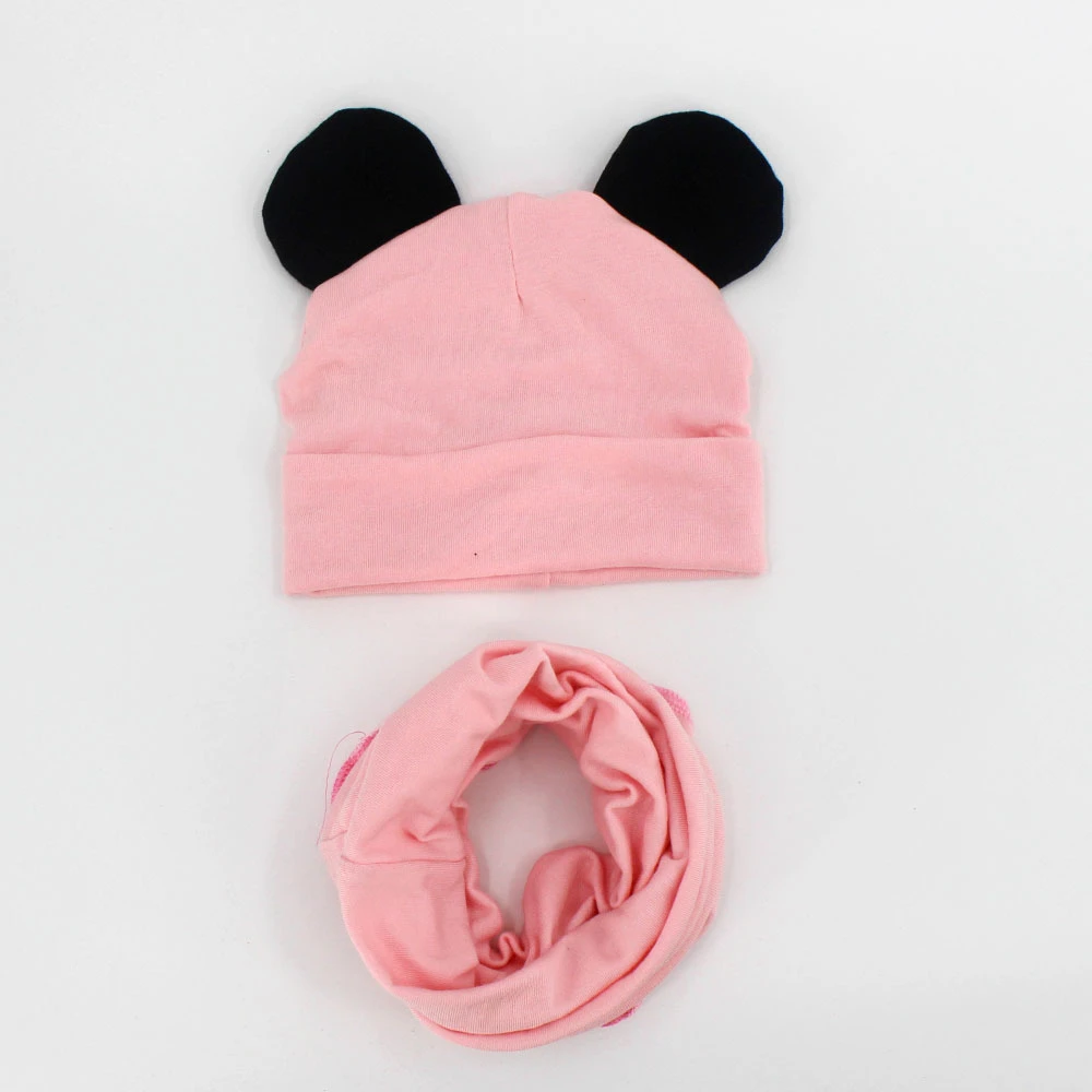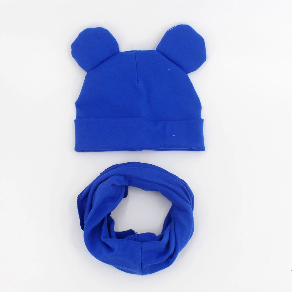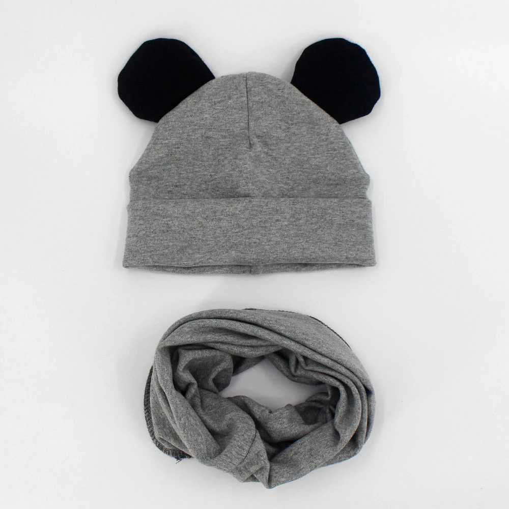 Вязаная шапка для мальчиков и девочек, хлопковый шарф, шапка с круглыми ушками, мягкий теплый снуд, 1 комплект, зима-осень