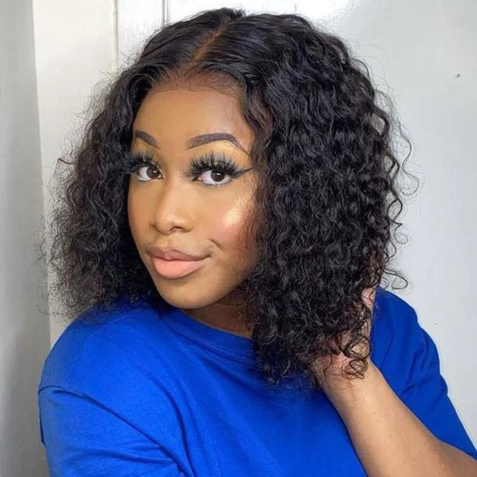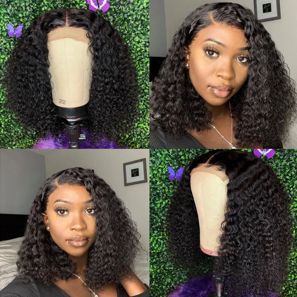 Короткий парик Боб плотность 180 Курчавые Кудрявые дешевые 4X4 пари...