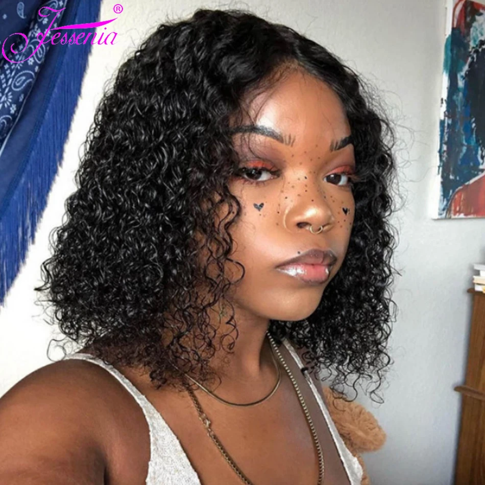 Дешевые Короткие Боб кудрявые вьющиеся человеческие волосы парик 13x4 парики на шнурке для женщин парик с выщипанной вырезом Пикси Remy Jerry Curl