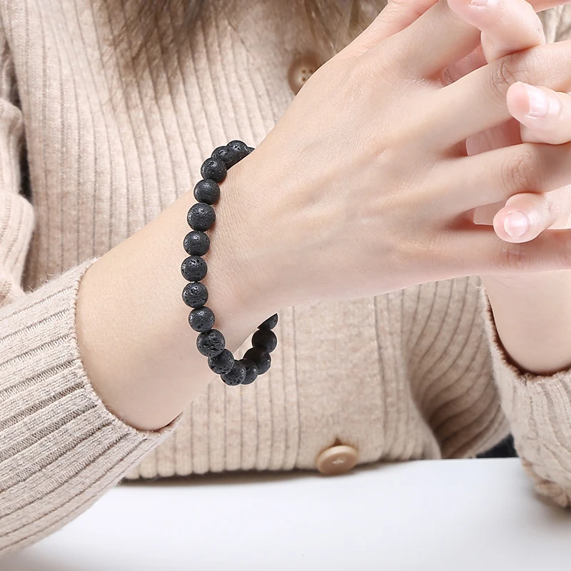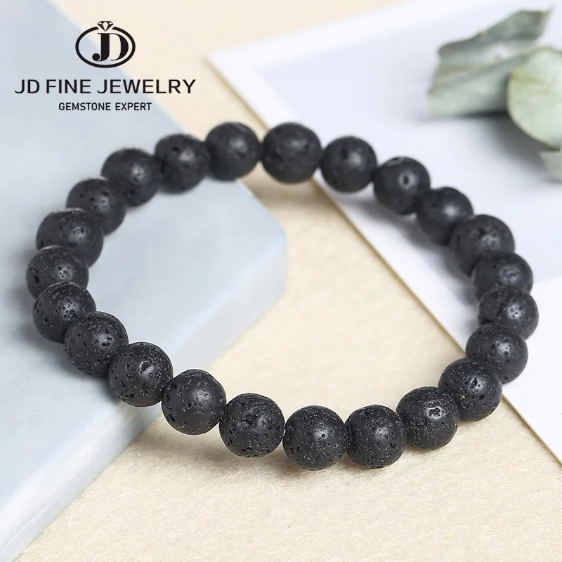 Браслеты JD 6 мм 8 мм 10 мм из натурального вулканического камня 5A, мужские браслеты из черной лавы, браслет с диффузором эфирного масла для ароматерапии