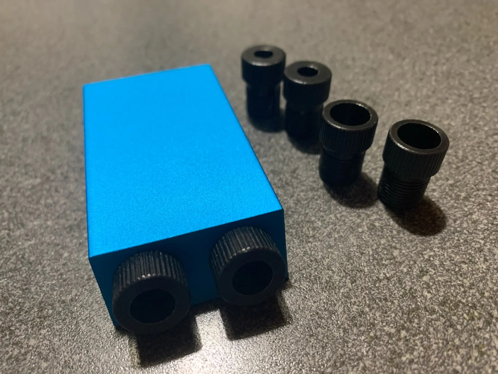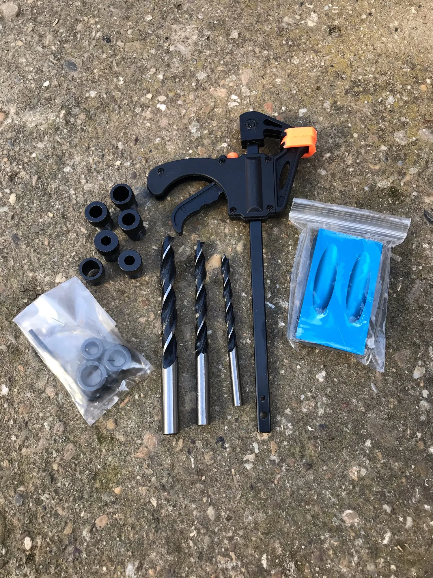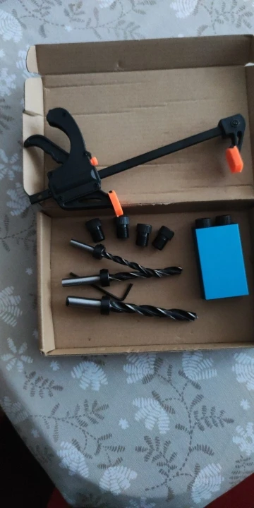 Кондуктор хороший, вопросов по нему нет. качественно и красиво, очень удачный заметный цвет. но струбцина пришла нерабочая - после первой же пробы что-то прижать - перестала отбрасываться рукоятка