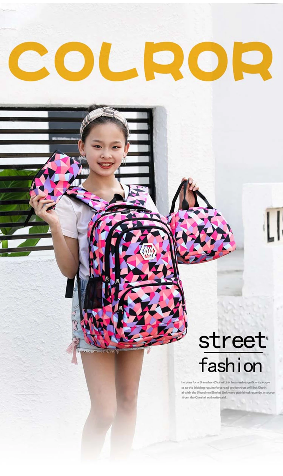 Рюкзак для девочек, из 3 предметов, школьный, водостойкий