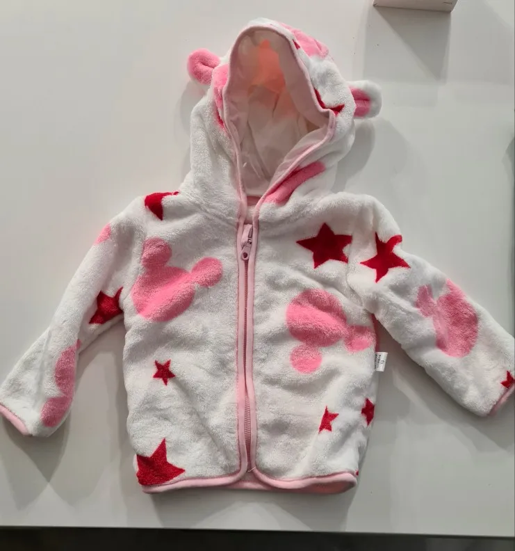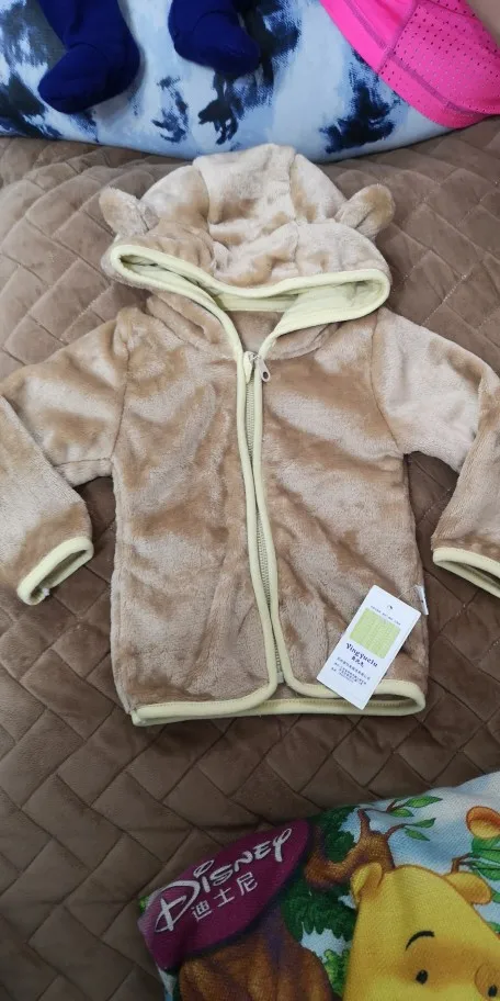 Cute jacket, I got two for my twins. It's very thin, but I ordered 4t for 18 months old so we got room to wear warm sweater underneath.