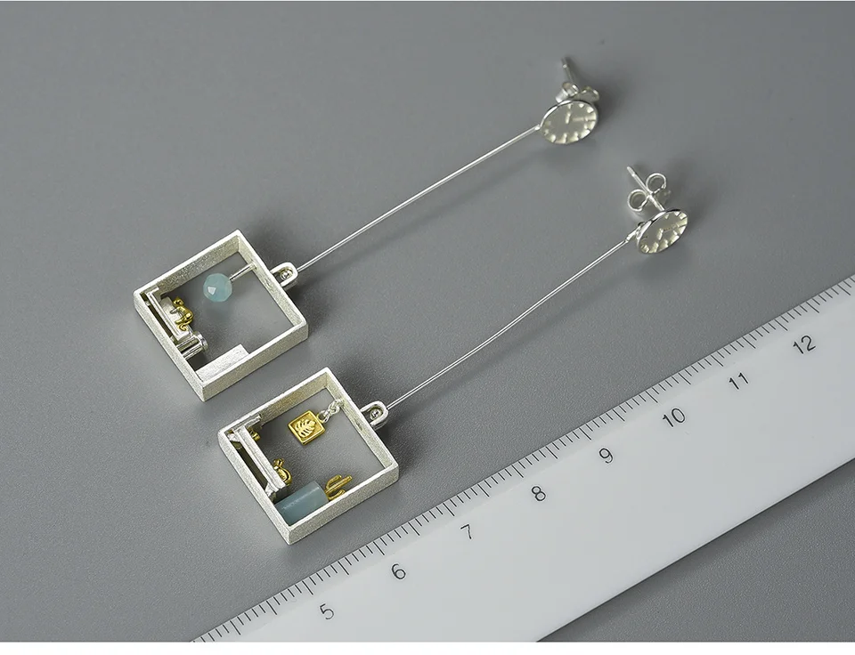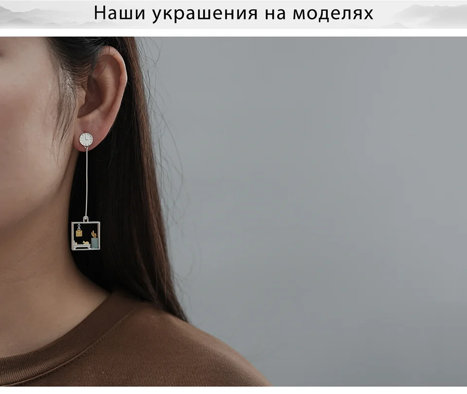 Женские серьги из серебра 925 пробы, большие, квадратные