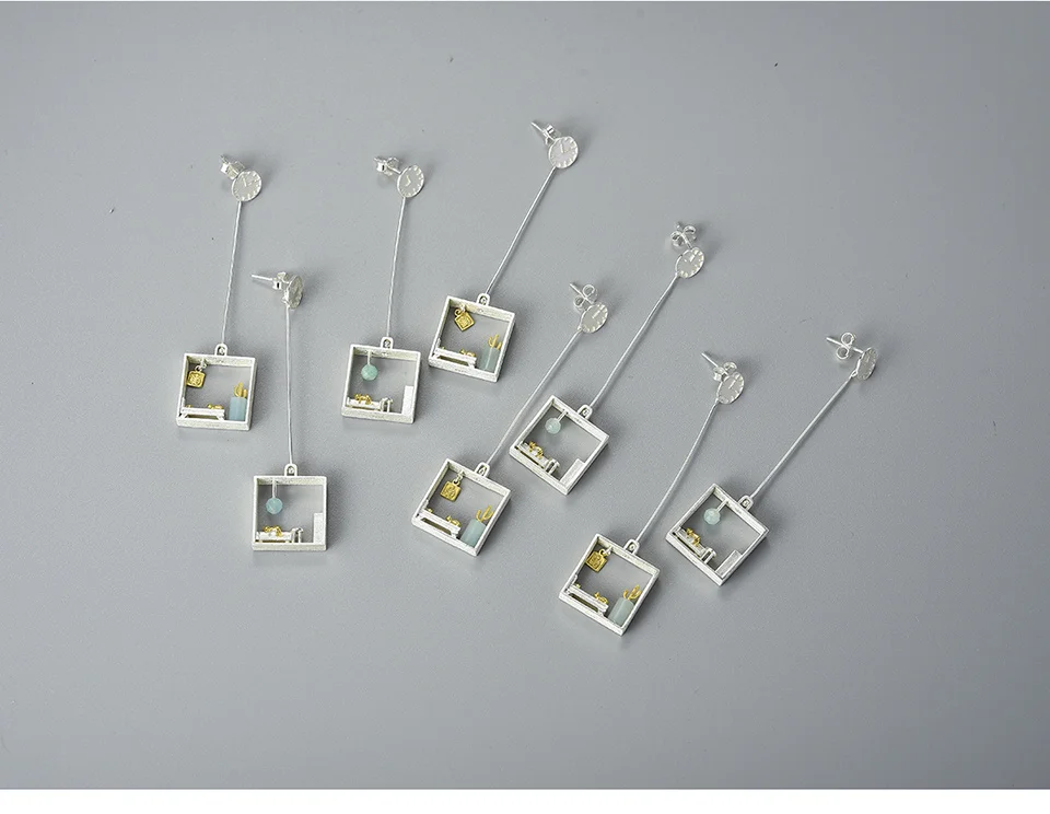 Красивые серьги. Или, может быть, квадраты :) поверхность матовая, не блестящая. Единственное разочарование-это довольно жесткое соединение между квадратом и стержнем. Подарочная коробка очень приятная.