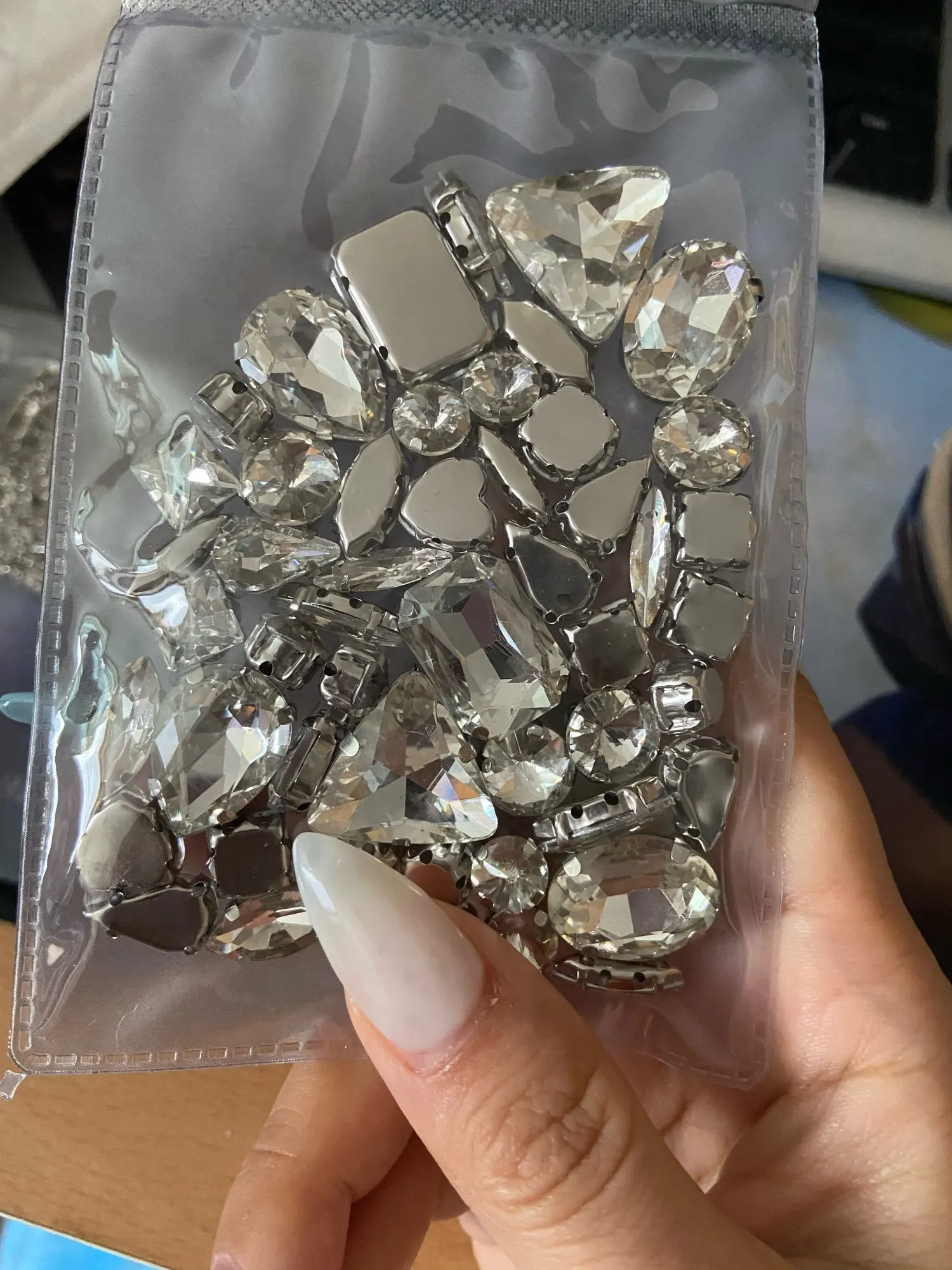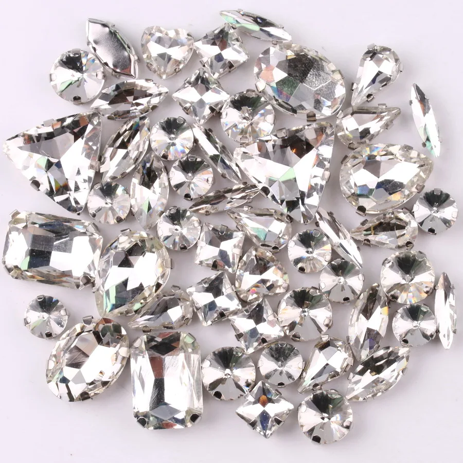 Закрепка с серебряными когтями, 50, шт.пакет фигур, прозрачное стекло, стразы для пришивания, для свадебного платья, обуви, сумки, отделки сделай сам