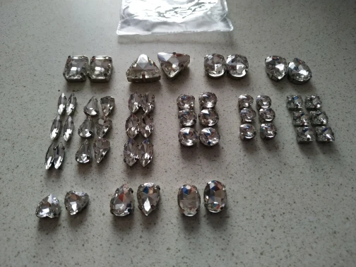 (8x13 мм waterdrop, 7x15 мм Marquis, 4x15 мм Marquis, 10 мм Rivoli, 8 мм Square, )5x6 шт. каждый