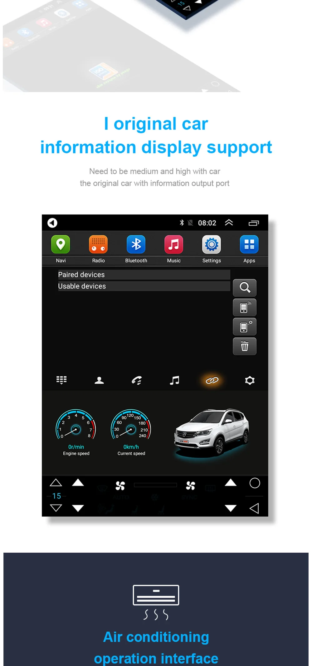 Большой экран радио, вы можете использовать экран для регулировки кондиционера автомобиля, хвалю!