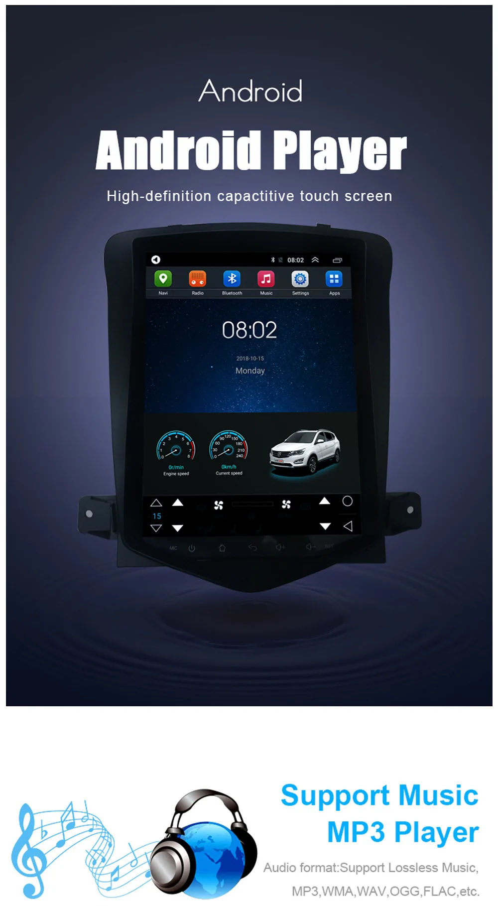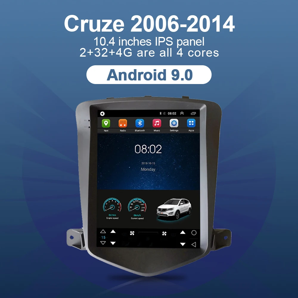 Автомобильный радиоприемник, сенсорный экран 10,4 дюйма, 4G, Wi-Fi, Android 9,0, GPS-навигатор для 06-14 Chevrolet Cruze